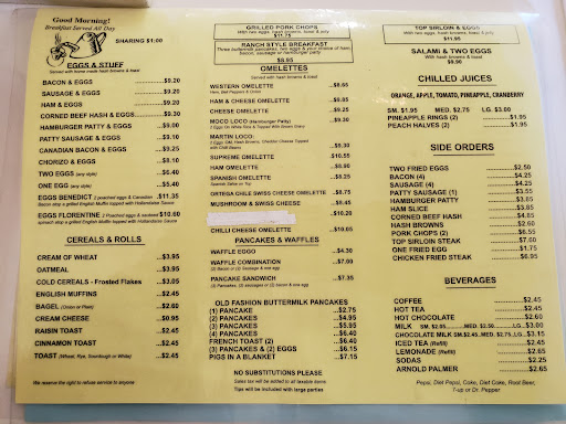 The menu items are inexpensive and well-portioned, although the coffee was a bit weak, service was friendly, place was clean and constantly kept clean. The environment wasn't loud nor quiet, some casual conversations around the shop with a bit of the kitchen's cooking protruding in. While it's not modern looking like Denny's and other big name diners, it gives you a safe feeling and that you're welcomed.