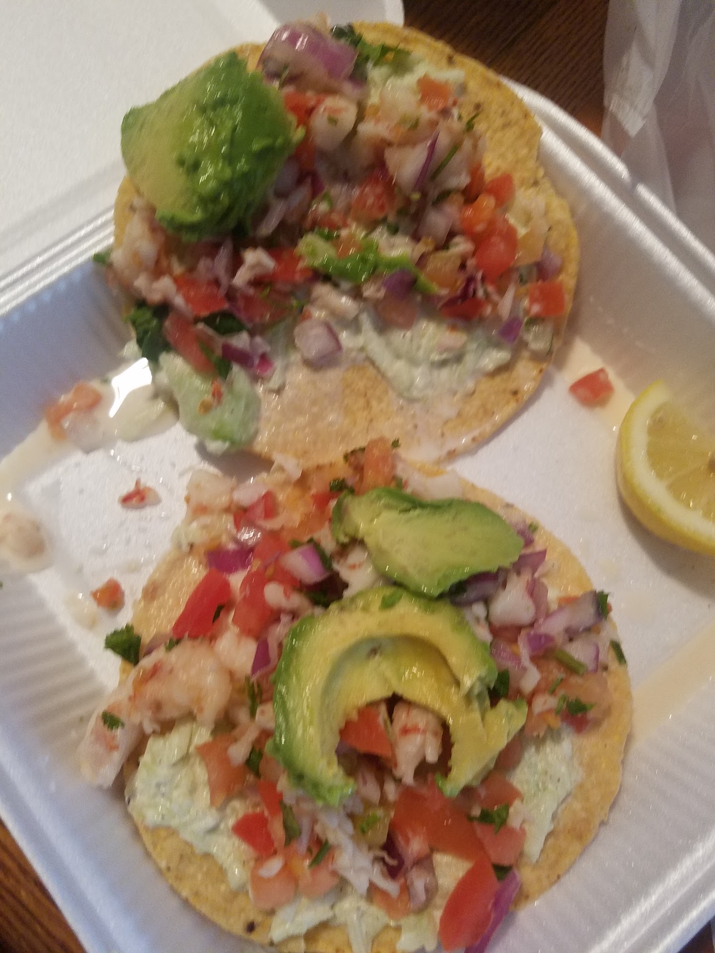 Read moreSo the service here was great at first. Then keep coming back for drinks, then shrimp tostadas and guess what the service isn't great anymore. I've been serviced by regular staff and owner. So todays experience really not great at all. I called to place an order and owner hung up on me. Okay. I drive down there and the owner takes my order and I ask for everything ok there side for my tostada's to go. Common sense, who likes soggy tostadas? I've order my shrimp tostadas 3 times this way before. Anyhow, I didn't notice until I got home that everything was together. So I'm not happy, first because who likes soggy tostadas!!! Second, it looks like there's more veggies than shrimp on my tostadas, which also happened the last time I ordered. I was thinking maybe they where that way because it was the last of it for the Friday special. Anyhow, I take a closer look only one if full and the other has half of the shrimp mix on it. I will add pictures. I ordered 9 tostadas and 2 where place in 4 boxes and where covered by a big chunk of avocado. I also called and spoke to owner and he said I didn't ask for everything on the side and hung up. I think the service for this place is going down hill. Such a shame. I recommended to many, that's why I feel I have to put this review up. If anything just check order before leaving, even if you've gone there many times before. I will stick to just ordering drinks...