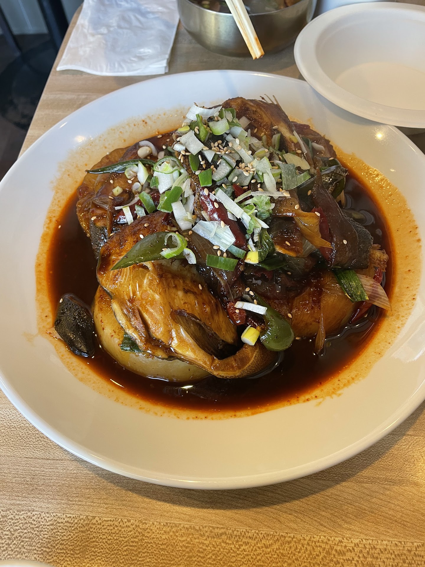 One of my favorite foods is samgyetang and they do it here better than anyone else in town. GENERGOUS portions, very reasonably priced ($24), and the flavor is above and beyond all the other places in town. It tastes slightly different from the tranditional style but in a good way: it tastes very extra herb-y . The owner explained to us that all the herbs that is used is importaed directly from motherland Korea. And you can definitely taste it in the broth. Rice is perfectly cooked inside the chicken and the chicken itself? FALLS OFF THE BONE!