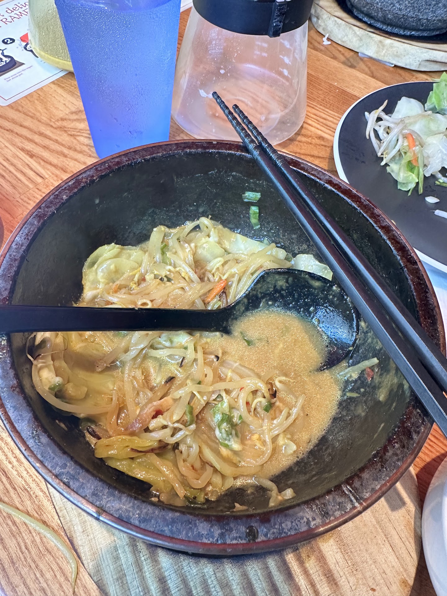 Finally she got our order then we waited forever AGAIN for our food. The soup were flooding the table during cook, curry tasted like curry powder added with too much water and you can’t really taste anything? And there are more tasteless cabbages in ramen than actual noodles.