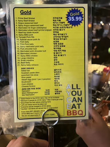 Read moreI took my mother & siblings to eat for mothers day as I am server and shift leader at my restaurant & had to work all weekend long I wanted to give them a special treat to amazing food with a bowling alley experience right across from the place. When I got there we asked for water all around there were 6 of us & we asked for brisket to start off. Our waitress who never told us her name brought our water & meat & but didn't tell us we had to go get out plates & side dishes ourselves at the salad bar we sat there like idiots for a good 10 minutes when the food was ready. She & rest of the staff never came by to ask if we needed anything/if everything was OK or if we needed refills we had to ask twice to get our two pitchers of water refilled. When final call (10:30pm ) came for the meat mind you there was only three groups of people left in the entire restaurant including our party this woman & the rest of the staff kept looking at us. Towards the end they dropped off the bill & as a server I know we all have to report 9% to IRS and I gave 10% because maybe this lady was having a bad day and I for sure know how it feels however customers come first & we must put on a happy face she never smiled & practically did everything with a sigh so maybe she shouldn't work at a place that means interacting with people asking her for things because she had a sour expression. As if we stunk or something. But I cannot believe how rushed , pressured and bad vibe we got from everyone!!! ! Except the Hispanic busboy who smiled the whole time & was a beacon of kindness the whole time he smiled and told us to have a good night on our way out he deserves some recognition for good employee & friendly service . As we walked out I asked if we can buy some macaroons ice cream which were going to be my youngest siblings first time trying as was Korean BBQ that night and the lady said "sorry too late we are closed" we felt unwelcomed & I am never NEVER coming again. As a server when dropping off the bill I say "don't feel rush this is for your convenience " and when close to closing time I let the guest know if they would like anything else before the kitchen closes including dessert ... Really bad service and the staff need and should be retrained for more effective behavior on up selling. I know for a fact managers aren't there that late at night (11pm) so this behavior might have be going without their knowledge for some time now so please I encourage whoever is in charge to spend some time talking to night staff about how to treat people and to always say "thank you, please come again". As for the future customers of this place take it or leave it but I highly suggest you come during the day when I'm sure friendlier staff & managers are on duty. During the night with hardly any guests this woman should've been on top of her game & happy to...