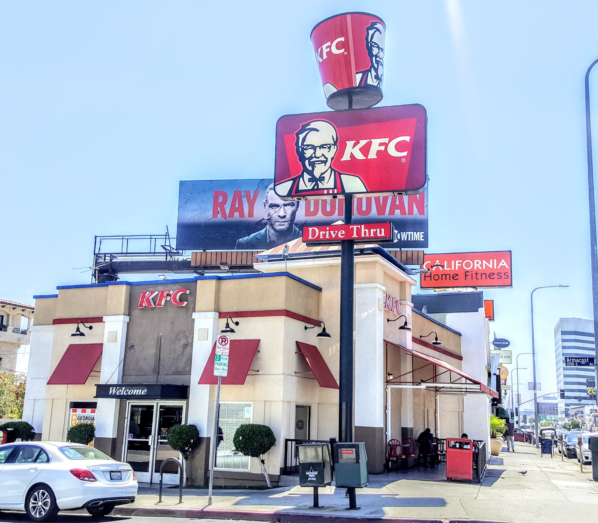 Read moreFood was normal KFC quality. I asked for 3 piece (meal) and the cashier never asked 3 pieces of chicken or 3 pieces of chicken meal? She said mashed potatoes and gravy and I said yes. KFC offers several side dishes. Got my order without Cole Slaw and I said the picture shows all of the above with biscuit. There is no indoor seating, only outdoor; 2 tables with 4 seats and 1 table with 1 seat. 3 guys were at 1 table and a homeless man had all his stuff on the seats and on the table. I was left with 1 seat table that faces the wall. I thought I lost my seat because I had to go inside and clear up the mess with the Cole Slaw, I think I paid more because I paid for 2 sides separately. I went way out of my way to this KFC because there are not many in Santa Monica or Venice (where I came from). Everybody left and I moved to a better seat with a view of the street to...