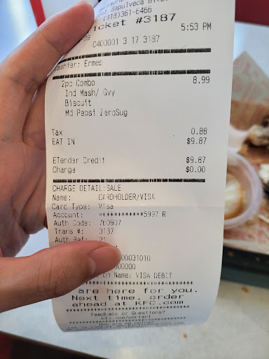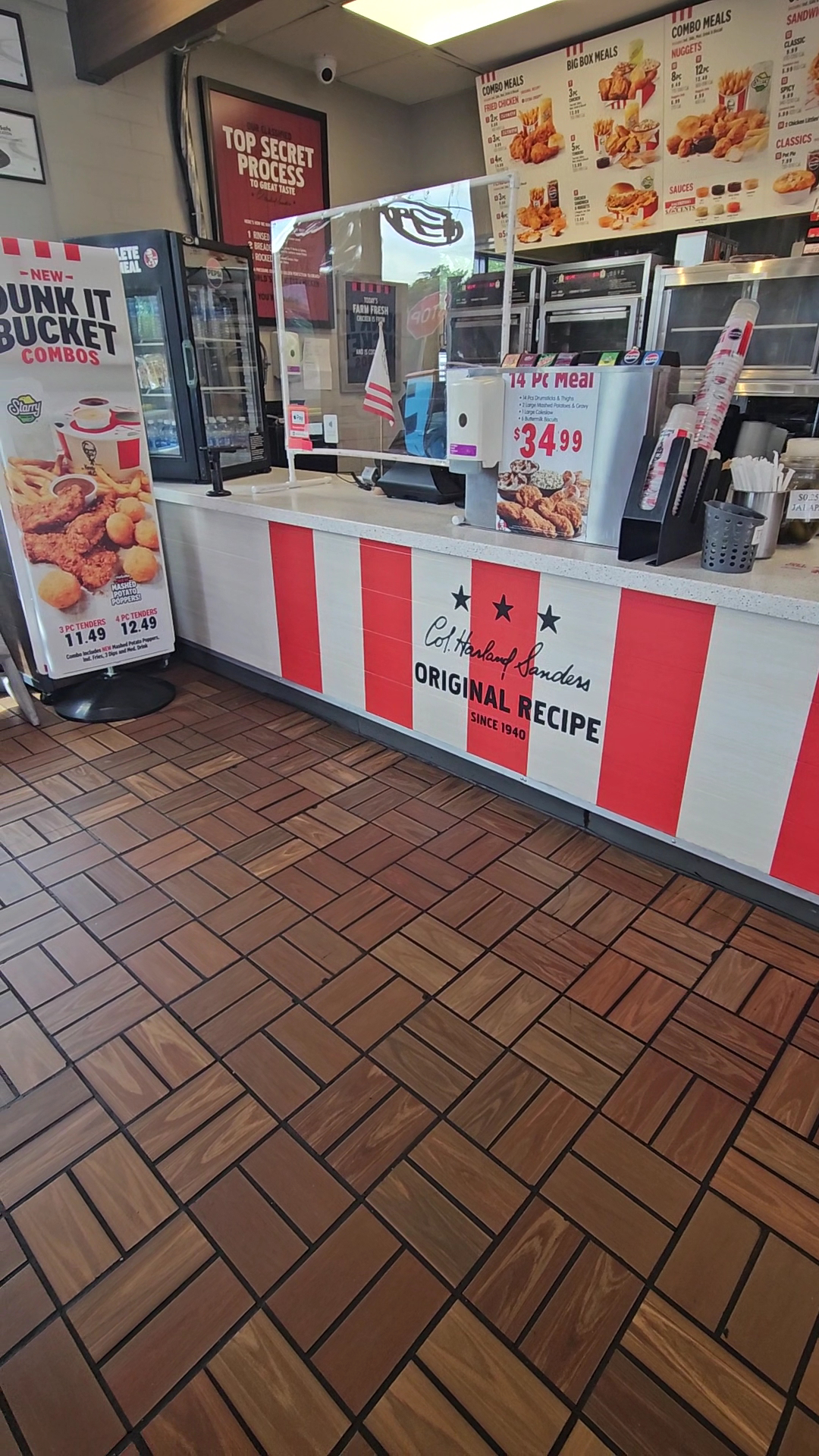 Read moreMy first KFC experience in the U.S. is ruined. The top rated(4.1 currently) KFC store among those like, dozens around here, serve fried chicken with a fried FLY underneath. Soggy and salty chicken was just as I thought it would be. (What an accurate public assessment these days.) I saw the human size deal promotion poster next to the counter and ordered $7 deal menu, but they charged me $8.99($9.87 including tax). They should've told me whether the limited time deal was over or the store goes with different prices. But first, should've gotten rid of that damn poster. Anyway, the 4.1 rated store serves a FLY, so I don't even know what I'll get...