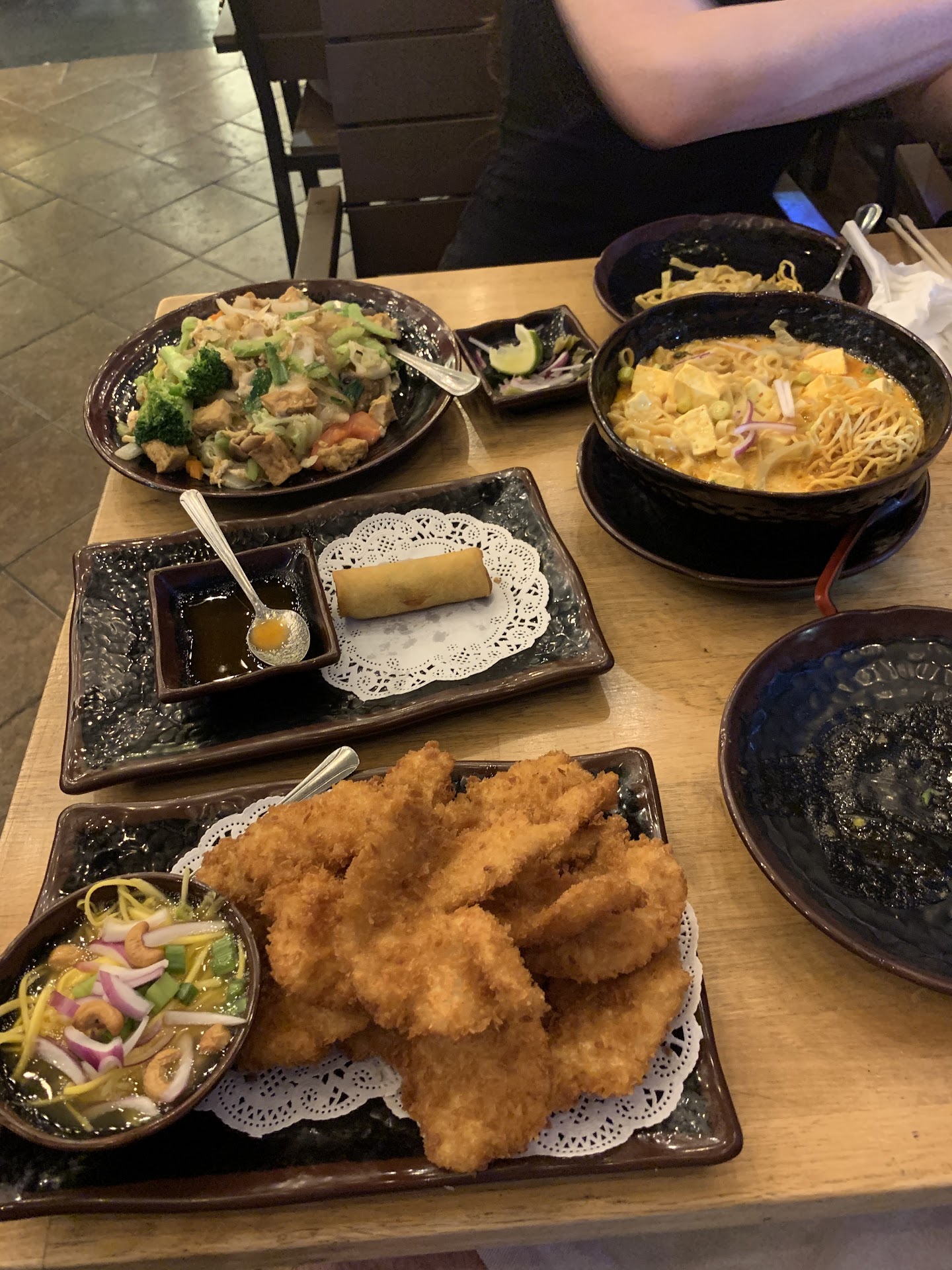 The Khao Soi was definitely not what I expected; The chicken was simply chopped chicken meat, similar to what you’d find in phở gà, contrary to the flavorful chicken leg I’ve seen used. The soup broth was reminiscent of a butternut squash soup— which was extremely unexpected. Our Pad Thai was decent, and wasn’t overpoweringly sweet like the ones I’ve had recently, and right around the quality I expected. The Pad See Ew was excellent, but there isn’t much to comment there; it’s a decent dish, no more and no less. Although the Tom Yum “noodle” soup wasn’t exactly what was ordered, the soup was nice, and the noodles had a good bite to them (came out steaming fresh in a bowl on the side after the mishap).