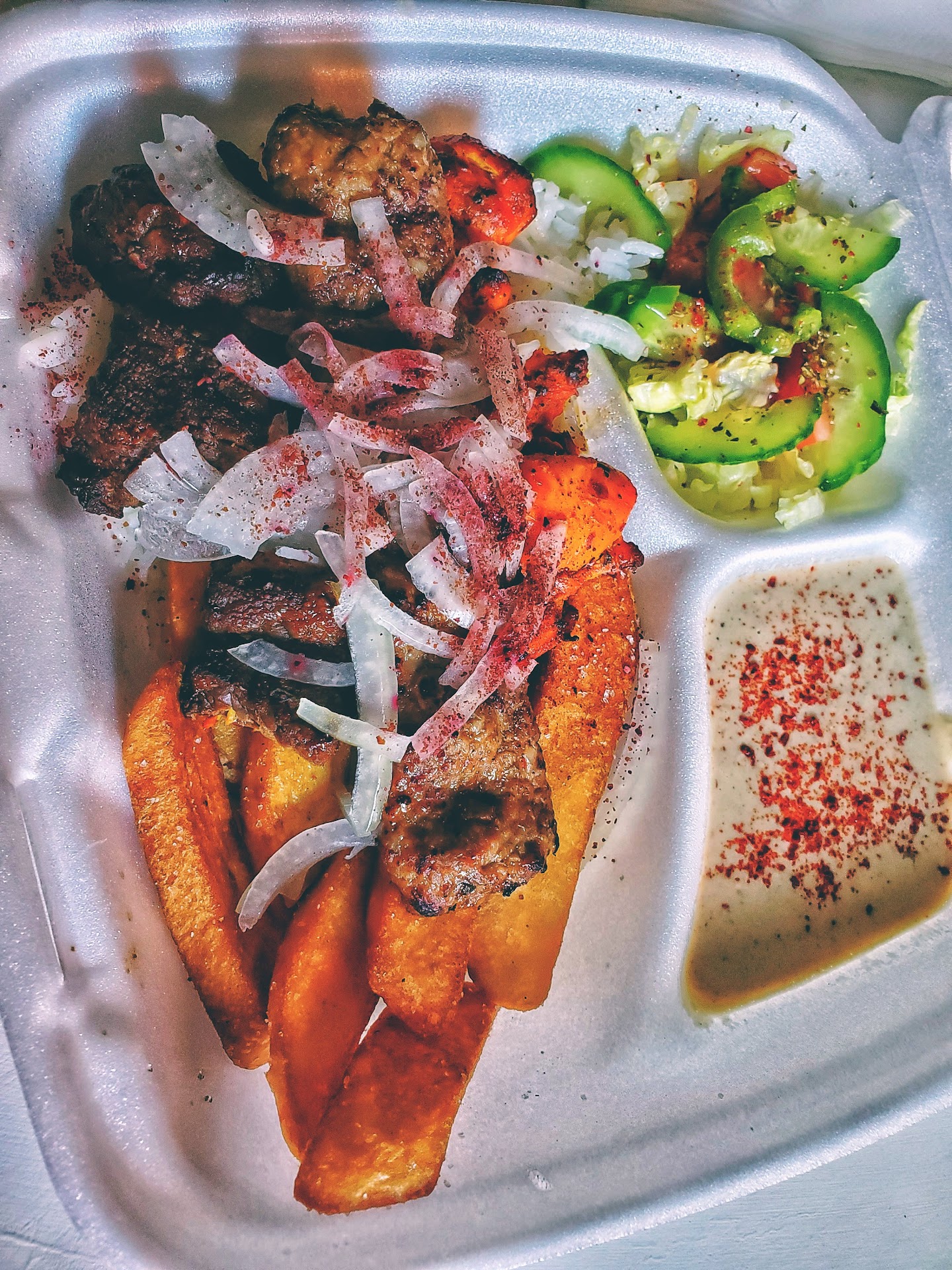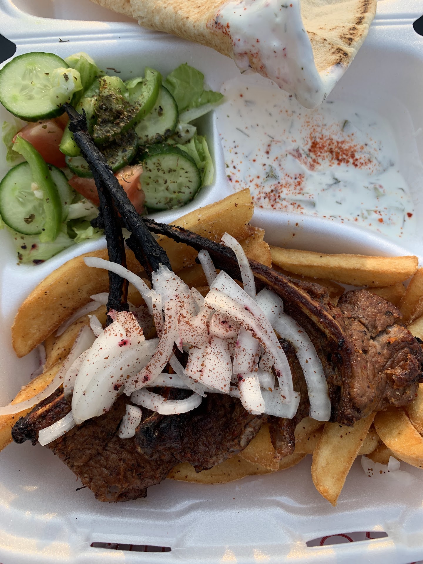 Read moreI returned to this area after 20 years to see if the food was still as good as it was growing up as a kid. Although I’m glad to say the food was extremely flavorful and as delicious as I remember. The portion size was absolutely not worth the money, sadly. I wanted to give a five star rating but I’m pretty sure nobody can afford an entire $20 bill for a single forkful of salad, seven or eight fries, and four or five small morsels of chicken with a side of pita bread. We all shop at the grocery store for our families and we know $4 will get you 10 lbs of potatoes, lettuce is nearly free, and chicken thighs are extremely cheap. So to be charged $20 for a small plate is absolutely absurd. It felt like my foam plate would fly out of my hand as I walked out of the door. Not at all like the heavy 2-3 lb plate we used to get 20 years ago. I’m sadly disappointed and will never come here again, unfortunately. Best of luck, I don’t know how this place is...
