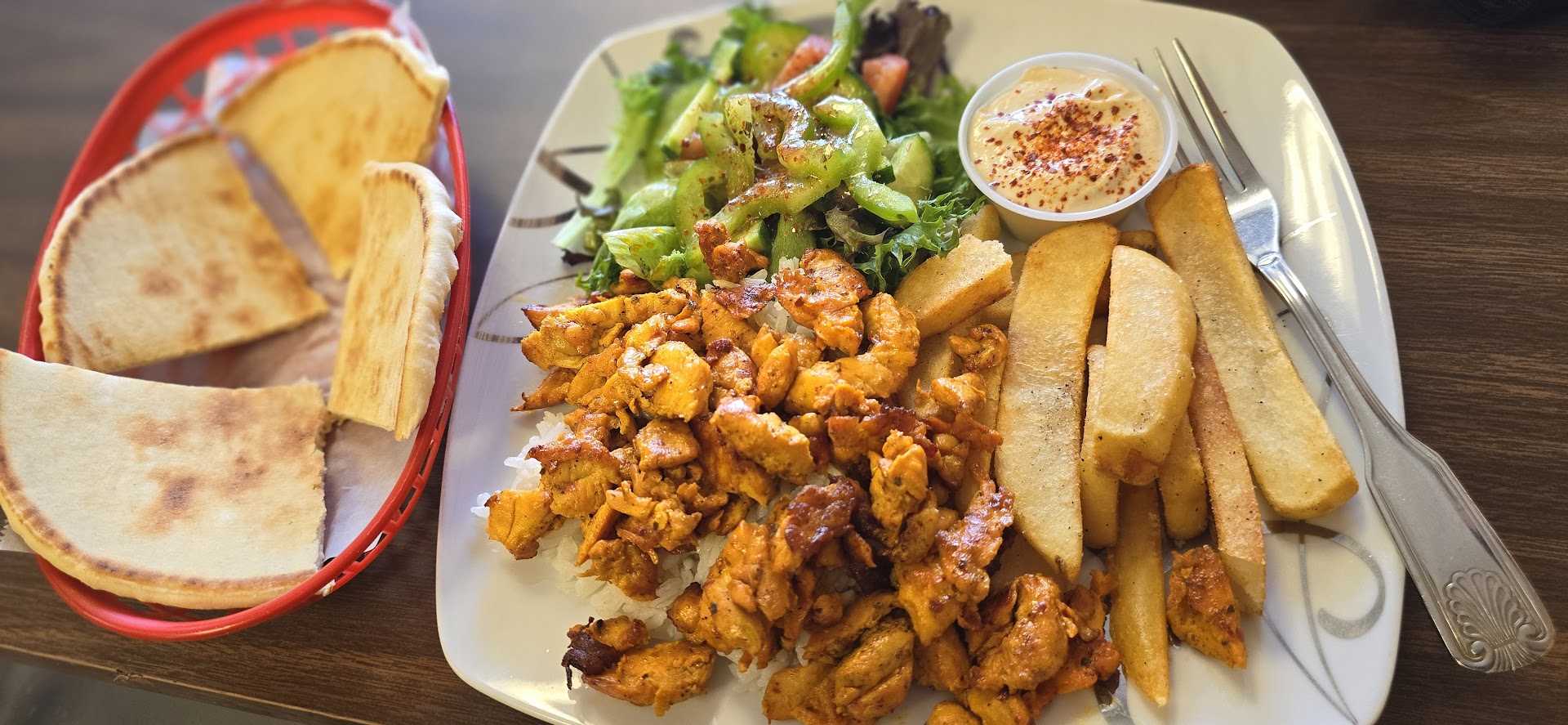 Read moreWe were looking for a quick bite before an event and happened to spot this cozy little place. We hadn’t read any reviews and had no idea what to expect, but it turned out to be a great find! The couple who runs it was warm and welcoming. I ordered the chicken shawarma sandwich combo—so good! The chicken was tender, juicy, and full of flavor. I really enjoyed it, and I’ll definitely be coming back to try more from the menu next time I’m in the area.