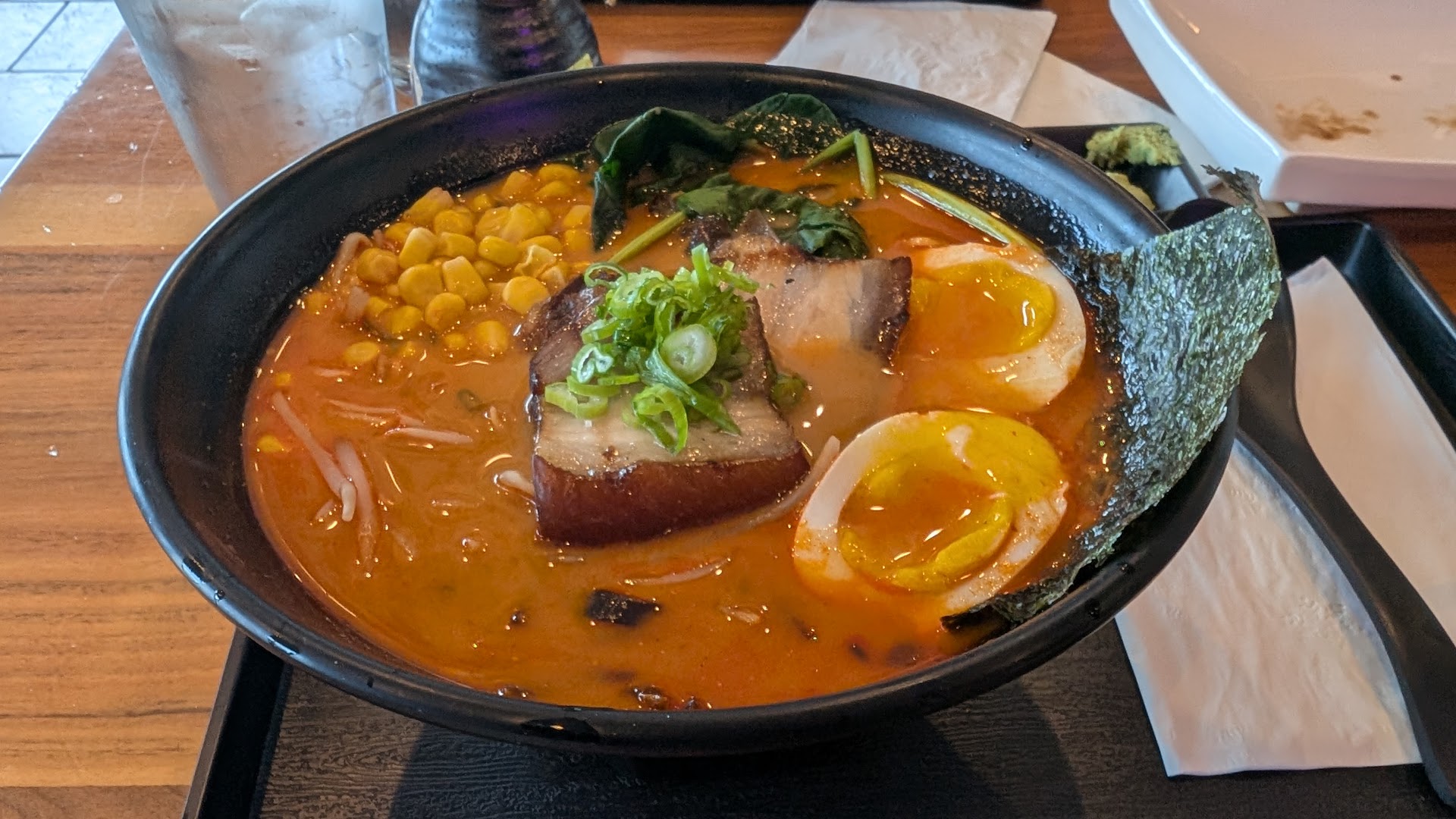 I came for the first time ever to this place and I really didn't know what to expect.A friend of mine recommended this place so my friends and I decided to give it a try.Whrn we first walked in a lady sat us down gave us the menus and welcomed us .This place has a beautiful aesthetic very neat and very colorful it has nothing to do with what some picture that are here on google.Service was pretty good.The lady came and checked up on us once we started got our food I got the spicy ramen and I will tell you it was DELICIOUS.Ive never eaten ramen with egg,seaweed,green onions,corn,or pork strips but let me tell you as a first time this was not bad at all! I will tell you that when I started drinking the soup it was some was salty but I didn't say anything I just drank it the best I could.The Bowl of Ramen that they give you is pretty filling make sure you come hungry! Also If you do come to this place keep in mind that the budget it going to be a bit high my group got 4 bowls of ramen and 3 fried dumplings with 4 sushi rolls was a total of $82.Which I was shocked but I guess it's some what reasonable plus realizing that where this place is located in North Hollywood,things tempt to be some what...