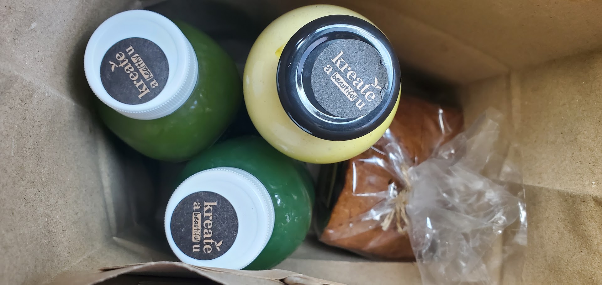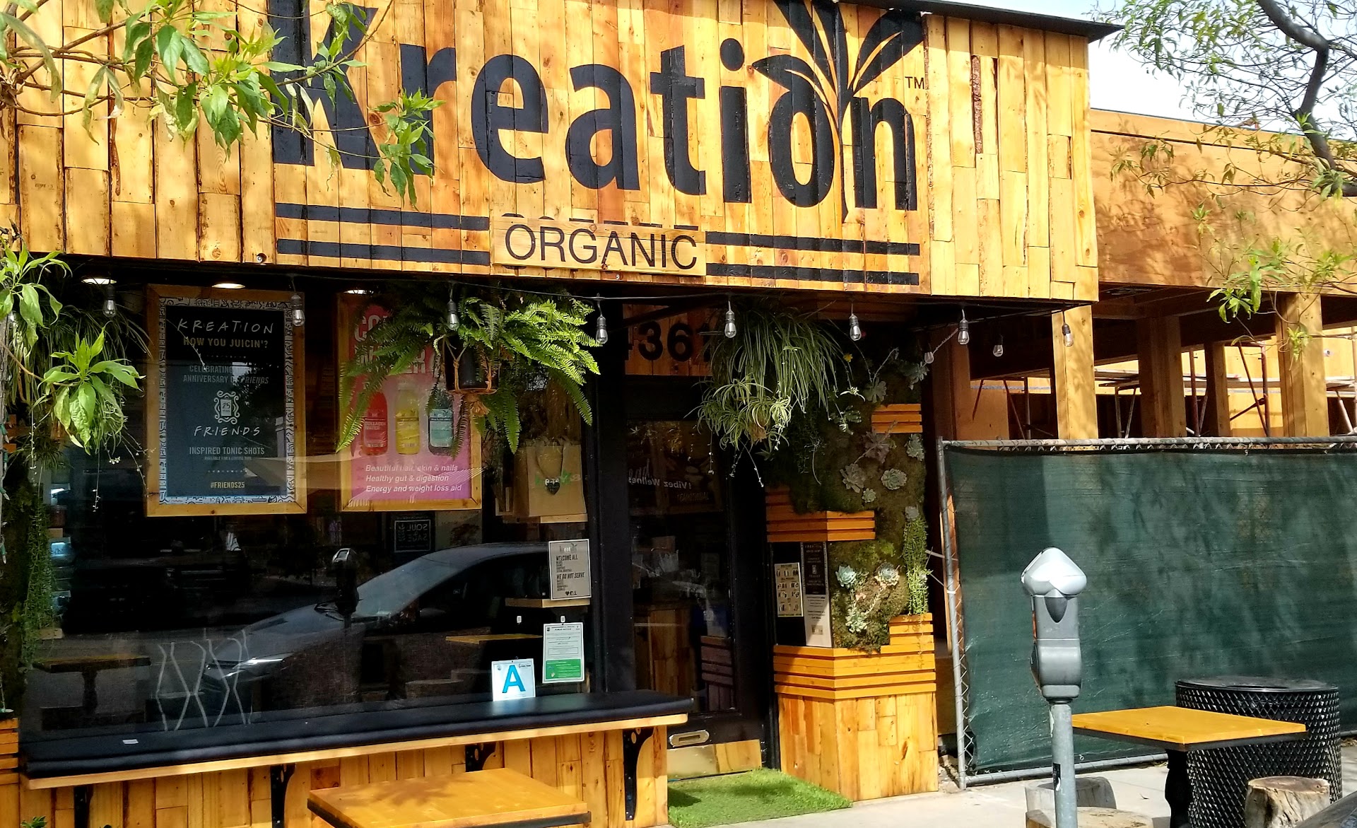 Sometimes itâs just one of those days where you need a nice, freshly squeezed juice and thank goodness cafes like Kreation are here to be of service to parched patrons seeking something a little fruity. The Los Angeles-based cafe chain is still in itâs beginning years (under ten years in business) but has certainly made a name for themselves with their health conscious take on food fare and leading the charge on the ever-popular juice cleanse (or in their case âklenseâ) craze. A variety of cold pressed juices and bottled smoothies along with specialty tailored syringe shots (i.e. beautify, flush down, and immune+), tonic shots (i.e. decongestant, sexy, and super green), and kleanse kits that cater to needs ranging from hangover fixes to a premium detox to even semi-humorous options focused on sex performance and Coachella survival, so itâs no wonder that theyâve garnered some local love and a big celebrity following. Whether youâre an Avenger (Chris Hemsworth aka Thor, Elizabeth Olsen aka Scarlet Witch), NBCâs ultimate dad goal (This Is Usâ Milo Ventimiglia), a Kardashian/Jenner (Kendall Jenner), a former Twilight vampire (Ashley Greene aka Alice Cullen) or an international pop star (Miley Cyrus, Justin Bieber, Adele), Kreation offers up something for everyoneâs taste using intriguing ingredients like chlorophyll, boron, camu camu, activated charcoal, and bee pollen (which was included in the juice that I had). Donât worry coffee lovers! They also have some wonderful cold pressed coffee (and teas) available to satisfy your craving...