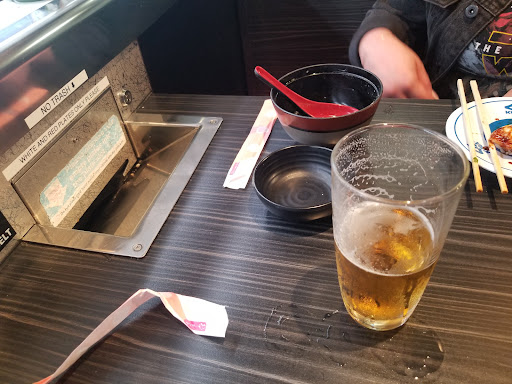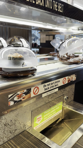 ย ย ย Read moreThis is a revolving sushi bar where sushi arrives on a conveyor belt and you take what you want. Itโs fun to try out for the novelty and the system encourages you to grab more plates to earn a prize. You earn a prize after eating a certain amount of plates and dumping them in the special chute on one end of the table that collects the plates. Definitely more worth it to check this out with friends, it seems like 4 people can fit comfortably to each of the smaller tables. Depending where you sit, you might not end up with much variety but thankfully there is an overhead special belt and digital tablet where you can order more of what you desire for express delivery. Also on the tablet, you can order foods that they might not carry on the standard conveyor belt. This place was moderately busy on a lunch weekend. Definitely worth checking out for the novelty. The staff are really nice and patient with greeting and checking in, they also gave us a ball because the machine at our station was jammed when trying to collect our prize. The ambiance is generally a bit isolated with our group having some privacy, there is music that plays overhead and nothing unpleasant to write about. There is parking somewhere in the back that might be paid parking but there happened to be street metered parking at...