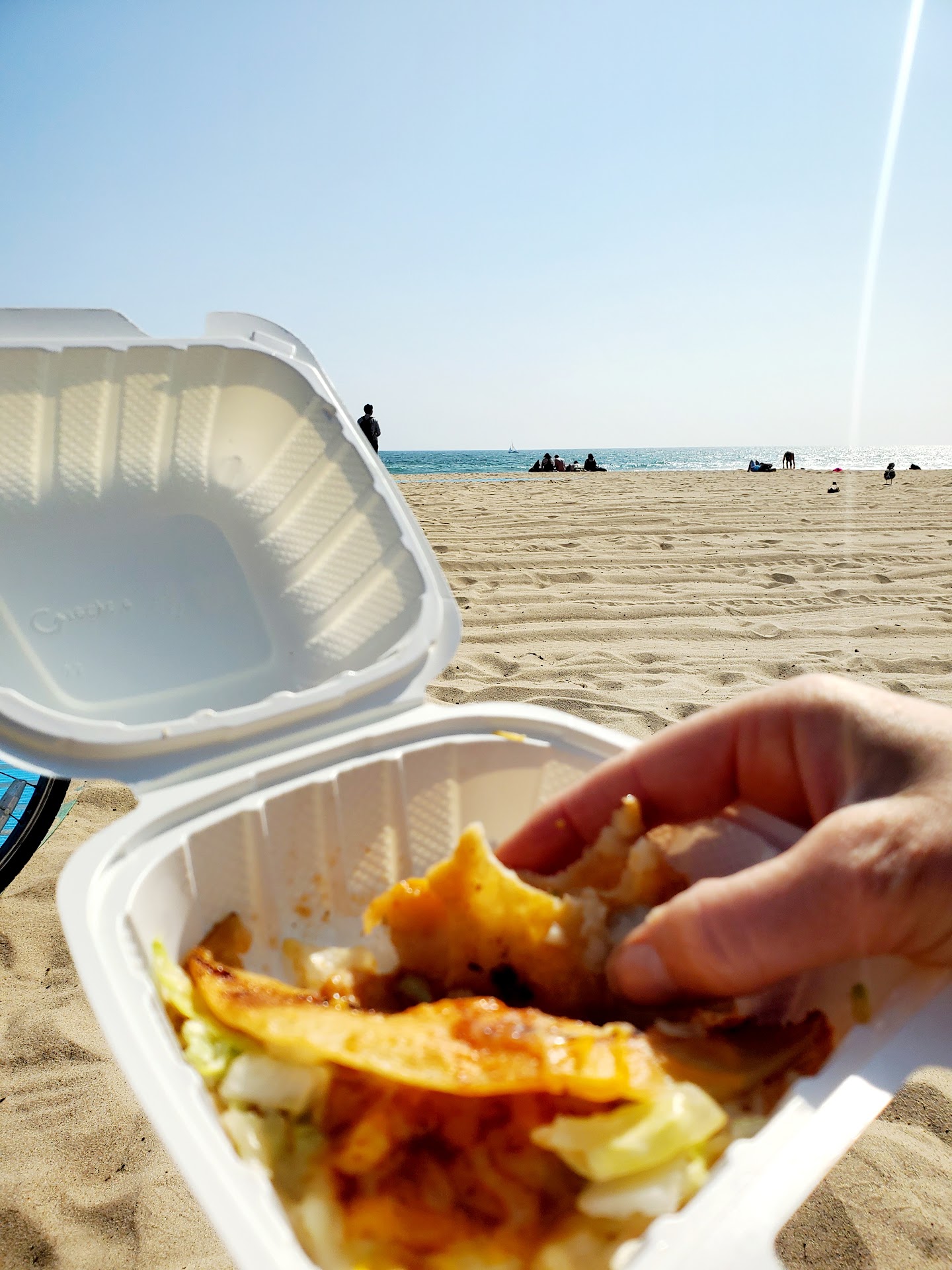 I grabbed my food, hopped on my bike, and ate it on the beach in the sunshine — pure bliss. To top it off, I ordered their fresh-squeezed orange juice and honestly, I felt like I drank straight from an orange grove. So fresh, so pure — like sunshine in a glass. Seriously wish I had a giant igloo cooler full of it.🍊 🌞