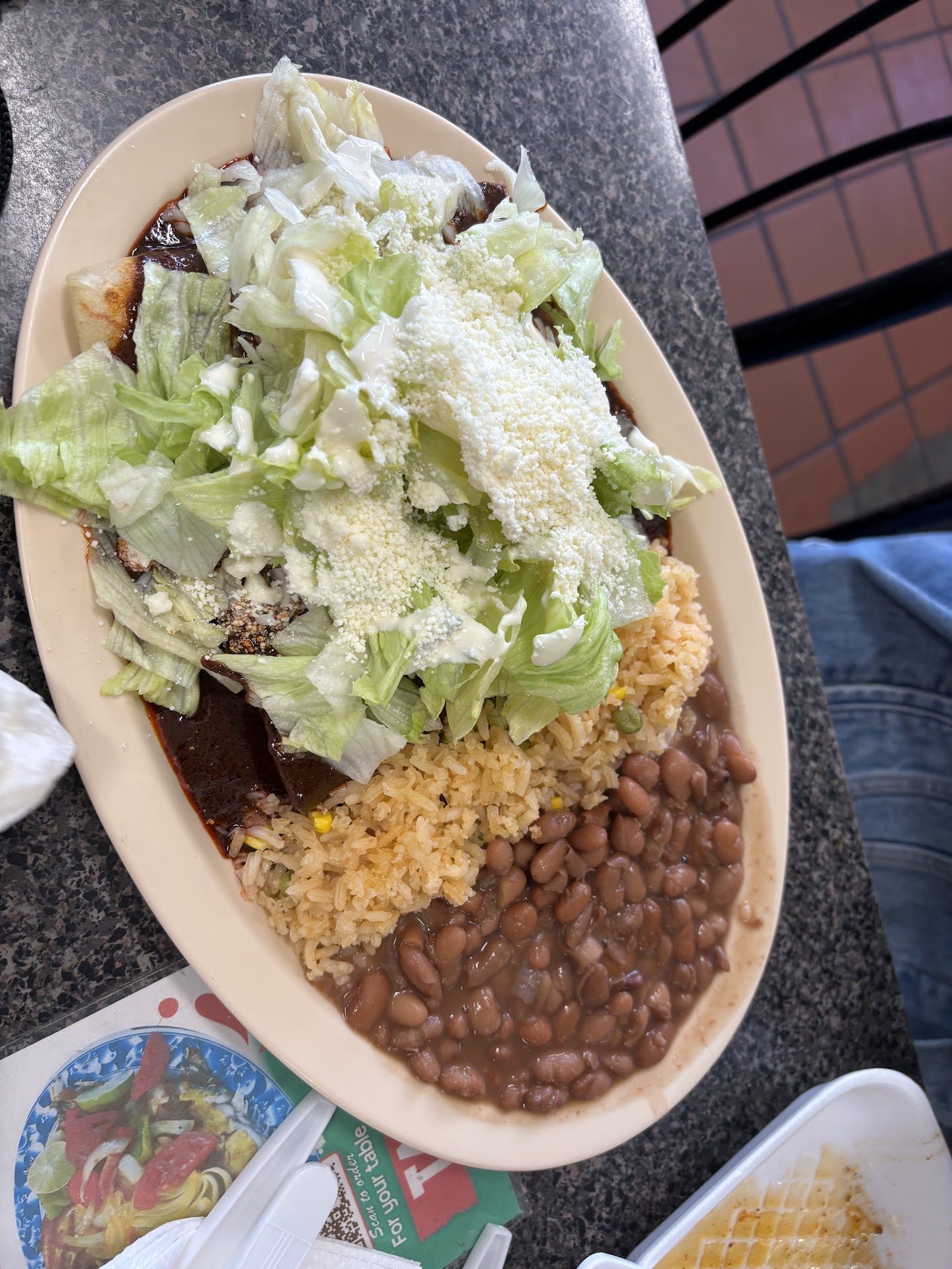 my friend had the taco. It was excellent, but he had to back it up with the enchilada and tons of Mole sauce. You will see the garnish of beans and rice. It was very appropriate,