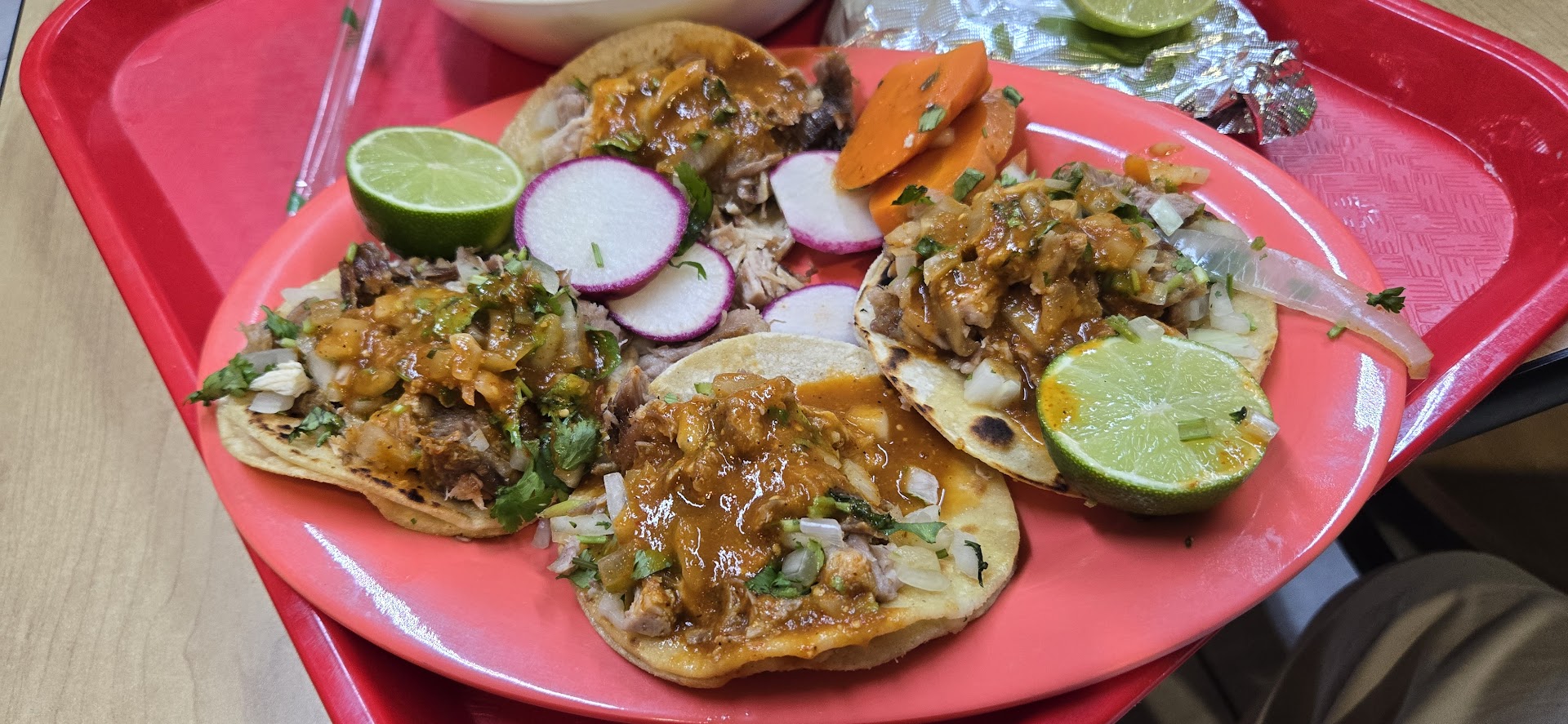 Read moreFound this little cute place after reading the review. My family and I just finished our lunch at a nearby ramen place but decided to grab something small to try. (Meaning we weren't fully satisfied with the ramen portions! 😅) The owner only knows minimum English but she was super friendly. We ordered 2 of the combo of 3 carne asada tacos with a soda for only $4.99! Where can you find this great deal nowadays?! The food was delicious and even though we just had lunch, we couldn't wait to try it. The meat was nicely cooked and juicy and I loved the pickled vegetables!! The service was fast, but we went there around 2pm on Sat and not sure about how it goes during lunch time. Will definitely visit again with an empty stomach and try...