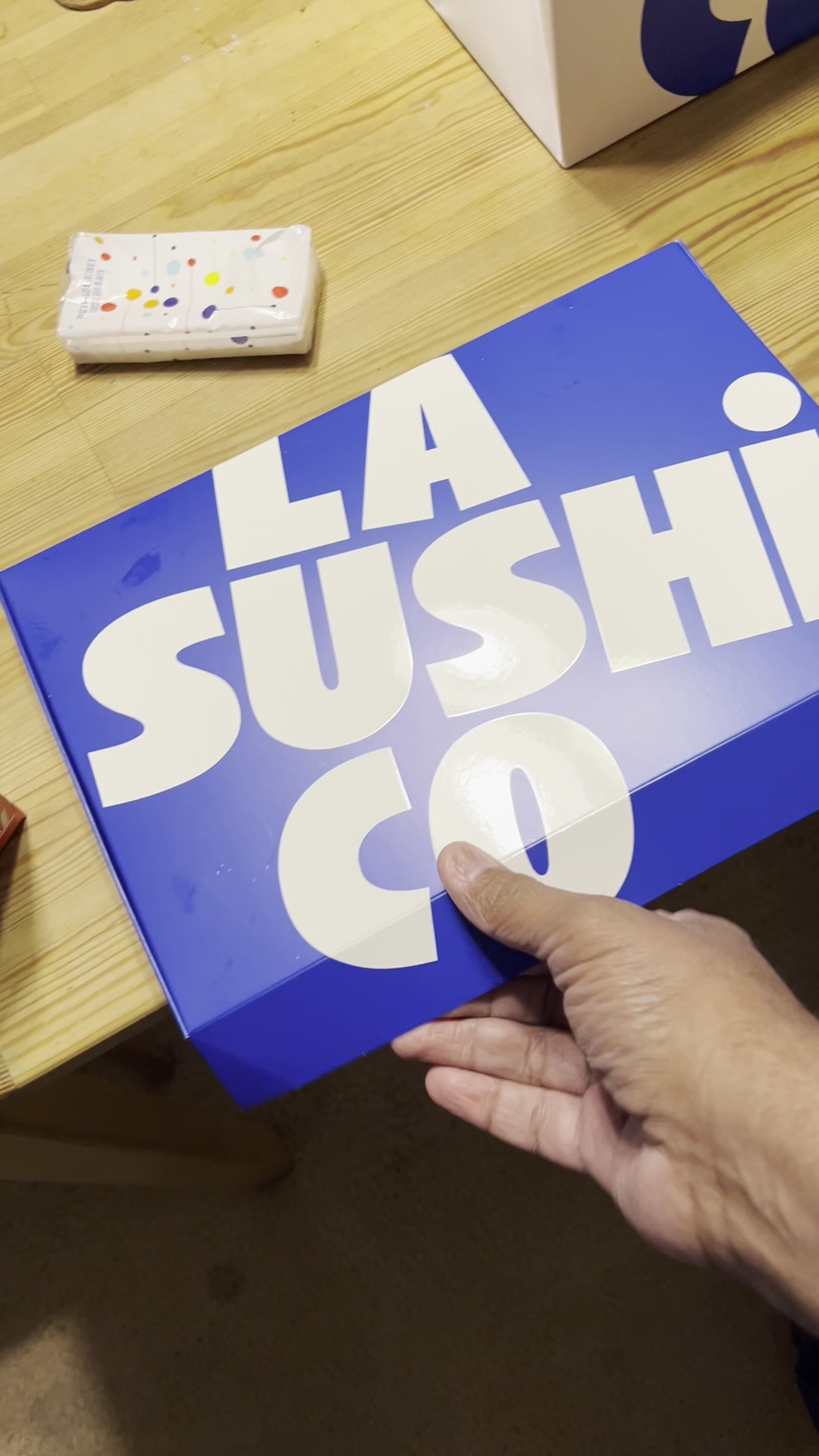 Their marketing game is a bit much though. The blue and white fancy bag, the napkins, the chopsticks, the bag that holds the chopsticks, the fancy containers, all of which have LA Sushi Co branding… I get it, but to me it’s just fluff for their boogie Brentwood clientele. Normal plastic bags and containers like they have at every other takeout sushi restaurant are perfectly sufficient. Keep it causal. Branding and fancy packaging adds nothing. The product stands for itself entirely on its own, which is all that really matters at the end of the...