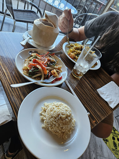 I ordered the fried mint, which I really had no idea what was coming with that, was it just fried mint, was it a rice dish? Had no idea, but when I received it, I was pleasantly surprised! It was a whole blend of sautéed veggies with the mint and a plate of rice on the side. The sauce was to die for!! And in perfect pairing, I had ordered a young coconut to drink. Also had no idea what to expect, but it was PHENOMENAL!! If you like coconut anything, this is better, because it's the actual thing with the obviously actual flavor, and suddenly, your coconut flavored things no longer stand in comparison. But I digress, the food was amazing, the mouth feel was amazing, the taste lingered in all the best ways and I wish I lived here so I could experience this all the time. If you need a pick me up after a rough day, 100% go to LA...