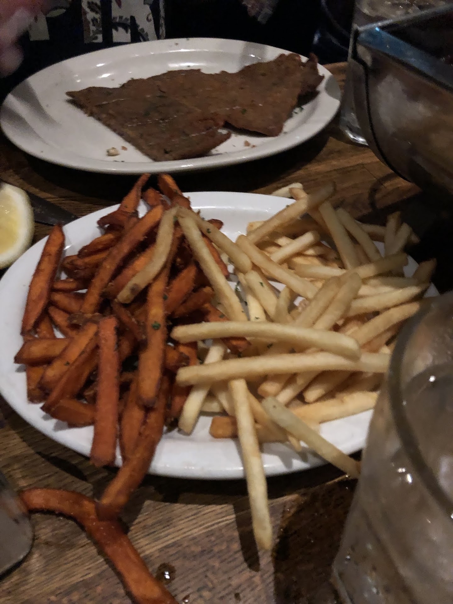 As for our beverages, we got an Arnold Palmer and two mojitos. Now the Arnold Palmer was fine, but it's not that hard to mess up pouring together store bought iced tea and lemonade. The mojitos are a different story altogether. They taste like sparkling water and Rum. Now I don't how other people like their drinks, but I would like them to taste like what I ordered. The music was probably the only good thing...