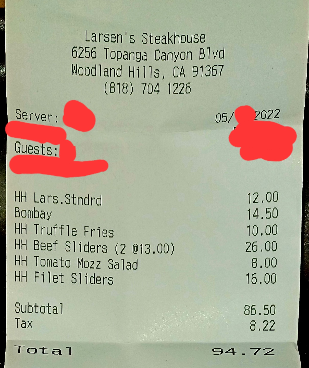 $10 Truffle Fries.. whooptie doo for $10, I didn't taste any truffle. At least they give you a "basket of fries." $8 Caprese "salad", I was literally expecting a bowl full of salad. Instead I got two slices of tomato, with a slice of mozzarella on top, drizzled in balsamic vinegar. $8? For two freaking slices of tomato? $16 for 3 Filet Mignon sliders? Here we go again, like Joey's (way overpriced too, in the Village as well). There was nothing in these 3 half dollar sized sliders (1/4" thick) that was anything special. Actually, they were rare, bloody rare. No distinguishable flavor, nothing that makes me say, oh my God that was a filet mignon slider. The bun is 4 times the size of the burger. And who knows what percentage of actual filet mignon goes into the burger, versus cheap 70/30 regular beef. Is there a standard? Are they being tested for this by the health department? $13 for 3 beef sliders with cheese. See number 3 above. They're charging you $3 less for pretty much the same thing as the above. Honestly, I'd rather spend $6 at In-N-Out, and get myself a double-double. At least it has way more flavor at in and out, AND 3 TIMES the beef!