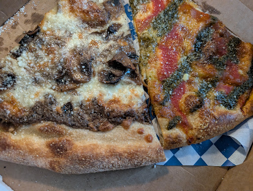 First Visit: Ordered a mortadella sandwich, a cheese slice, and a special of the month slice. Both slices were totally overcooked and not fresh. The cheese slice was too salty and thin. (I have high salt tolerance, but have gotten pizza from LaSorted's before that was so salty that it was inedible). The flavor of the special slice (The Philippe's slice) was not good, and the person I was with agreed.