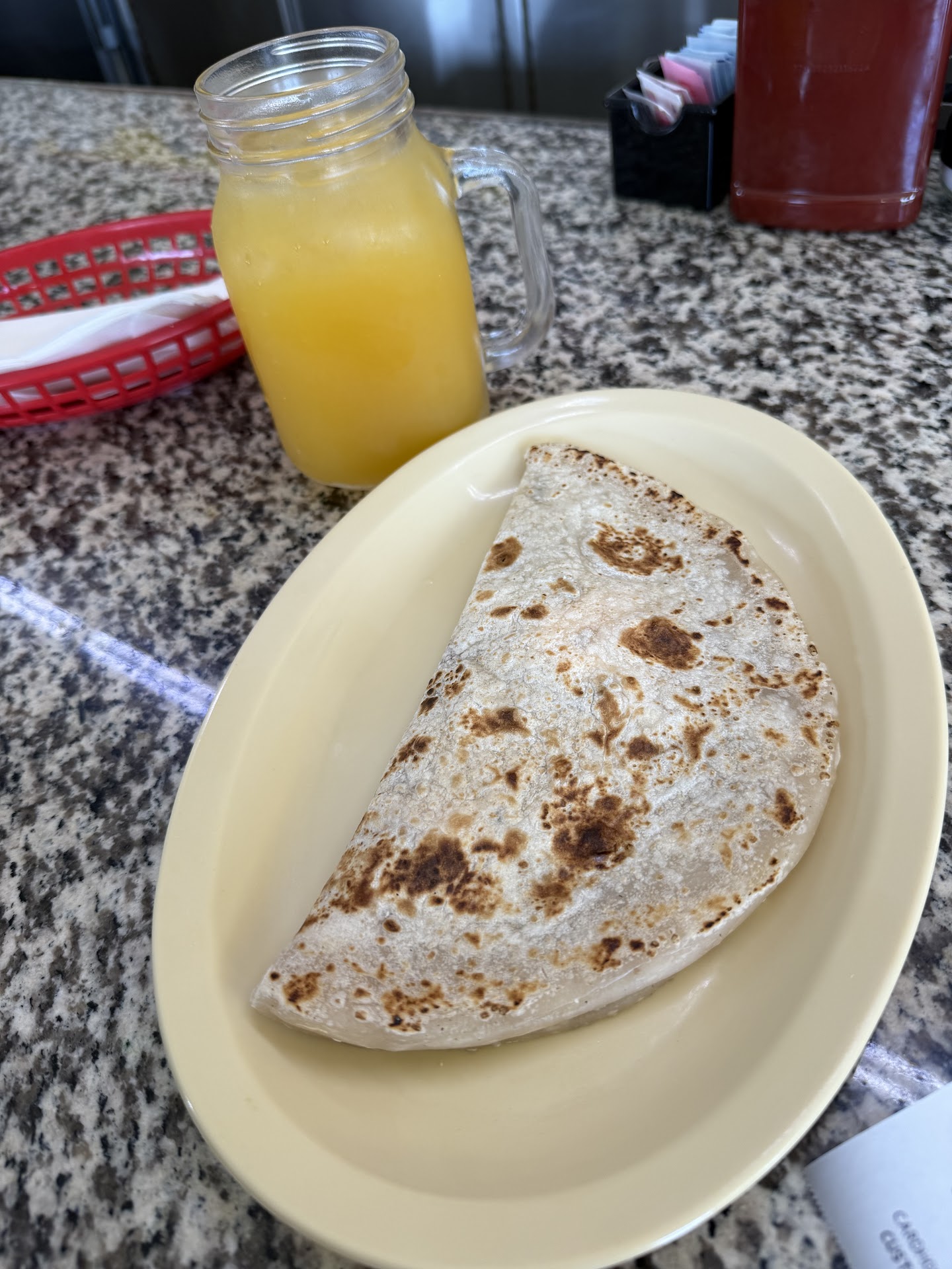 The food was tasty, but very salty and kind of dry. Nice homemade tortilla.
