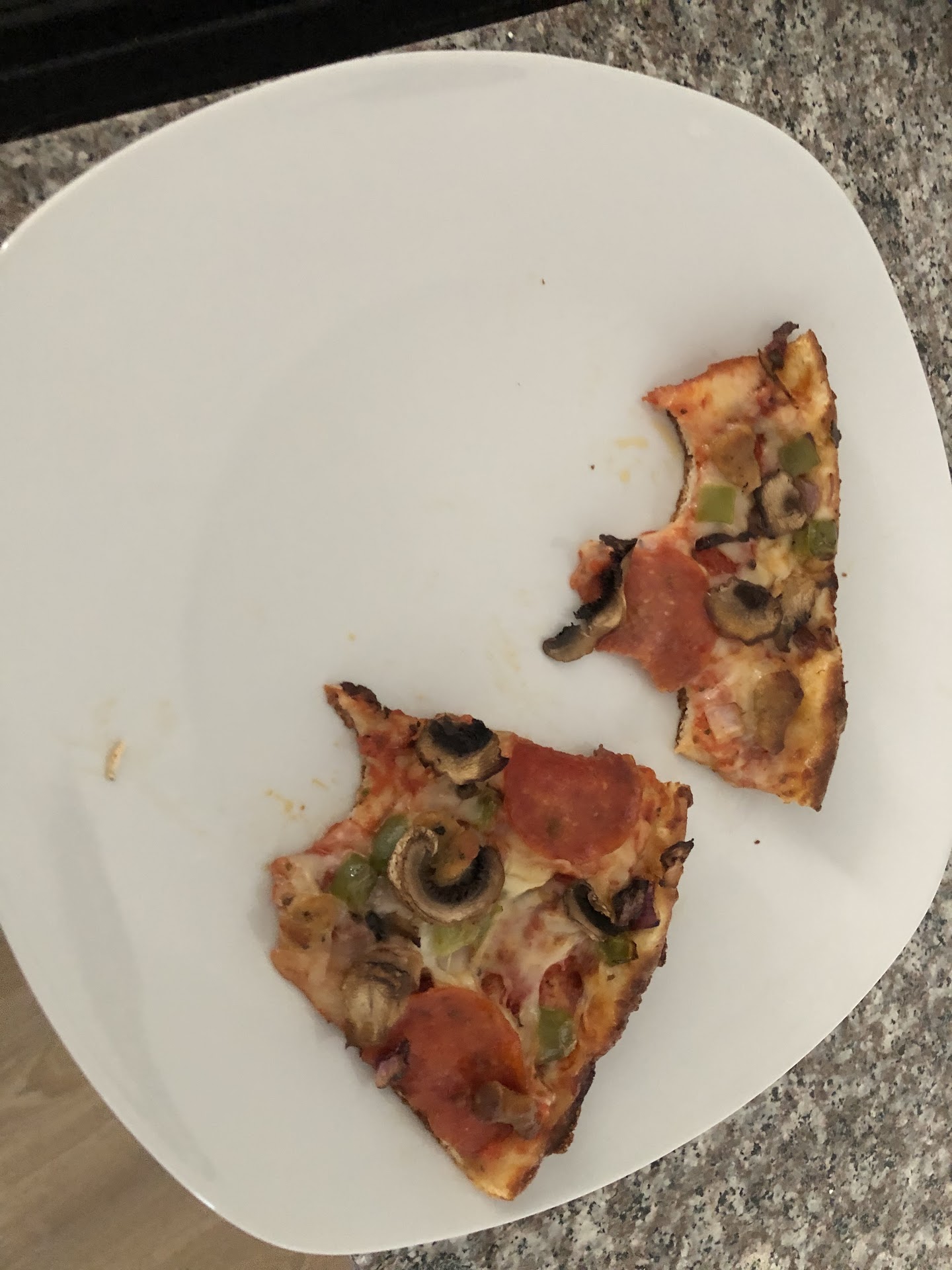 The Ceasar dressing was a packet with non-homemade ingredients and I'm 90% sure the pizza I hade was a commercially made prefab..