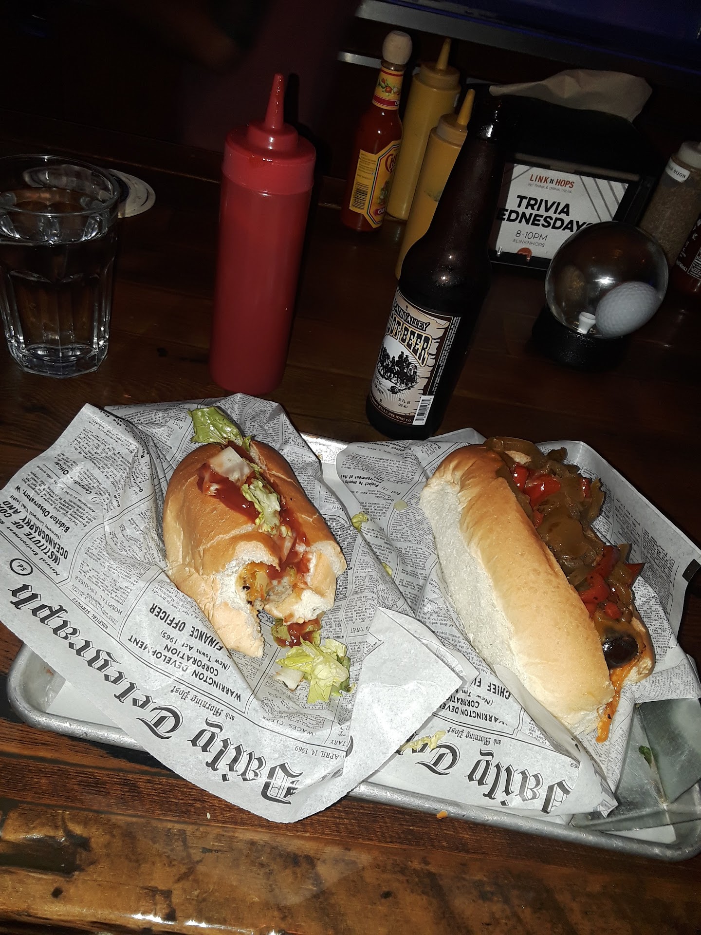 As fate would have it, I’ve now had the chance to visit both Link N Hops locations. (On different days…) We started in Atwater Village in July before a “Poetry Circus” event happening nearby in Griffith Park. As a vegetarian family, to be able to go into a beer and sausage place and have so many options, is quite a coup in the comfort food world for us. They have 4 kinds of vegan sausage available to build sandwiches around, plus a Beyond Burger which doubles as perfect for gluten free people…like my wife.
