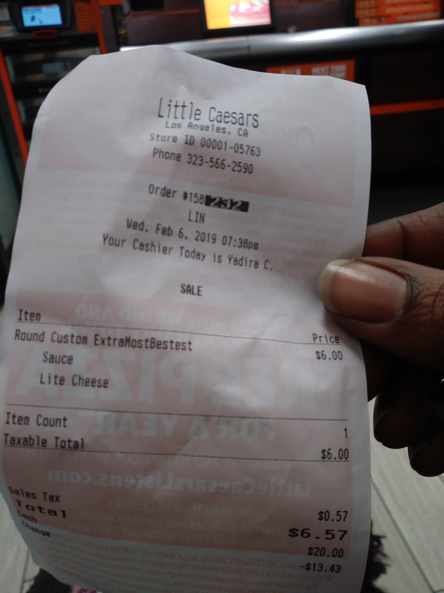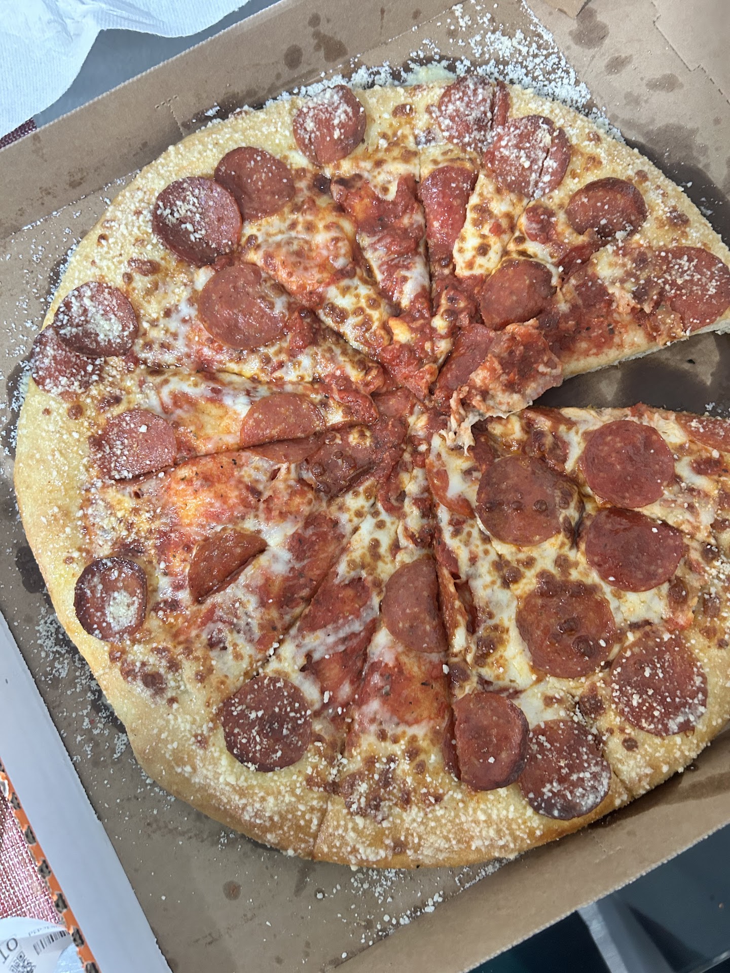Read moreYou can't expect much from a place like Little Caesars but I at least expect a pizza that wasn't made way earlier in the day. Especially since I ordered on the app. I ordered 3 pepperonis and one special pizza and they were all horrible. The cheese was cracked(meaning it was already dry and likely from an earlier cancelled order). They probably just threw them in the oven really quick and we're like " Good as new". My special one looks like it was a pizza that has been sitting all day and they just threw the extra toppings on and placed it in the oven. It was hard and it just looked horrible. I will be asking for a refund next time. Again, it is Little Caesars so I don't expect super fresh pizza, but I don't expect to get 5+ hour old pizza....