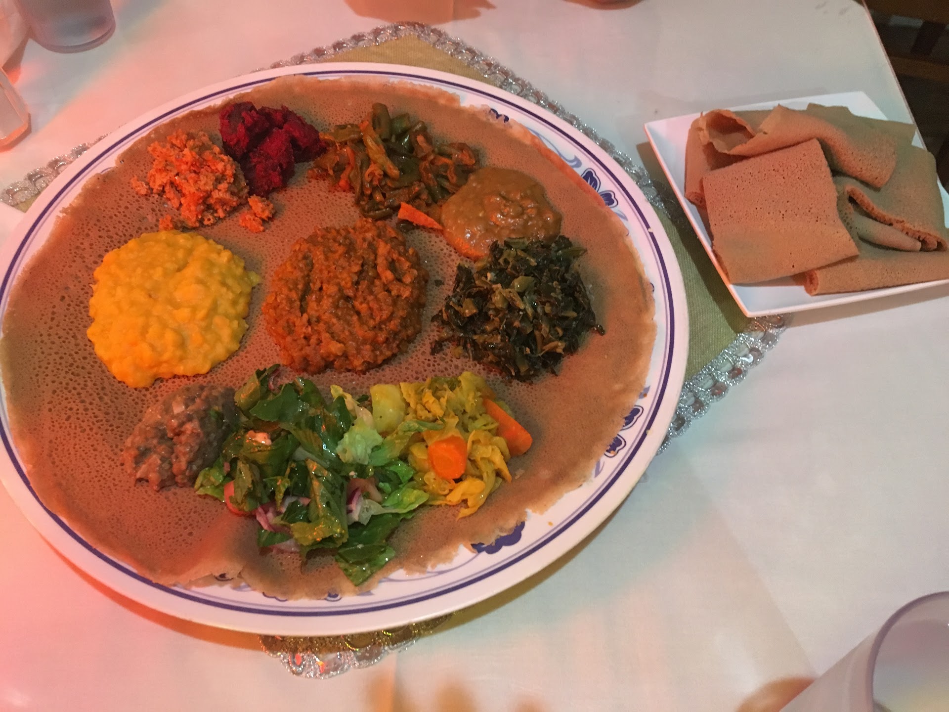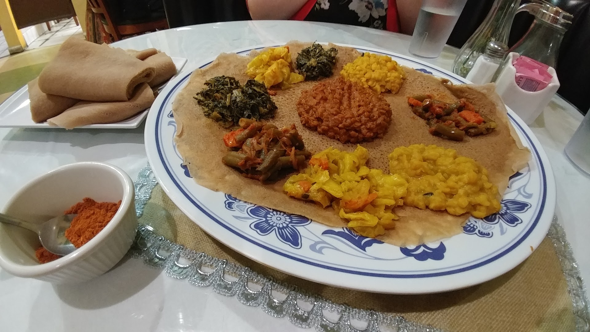 We had spent the day at the Peterson Museum, and decided to check out the local restaurants. Based on the online review highlights. We chose Little Eithiopia ("traditional food in casusl digs."). The food was good, largely vegetarian. We shared the vegetarian combo, the lamb stew (Alicha Wat), and the beef & potatoes, collard greens mix (Little Ethiopia Special). We had rice instead the injera bread, as we are gluten free (tell them when ordering!). The music and decor seemed authentic. The only things I didn't like was a lack of forks (I think the bread is typically the 'utensil,' like Mexican food uses a tortilla), and burning insense as our dinner progressed. I'm not a fan of...