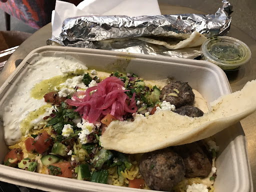 After reading reviews, I opted for half basmati rice, half hummus. Thank you Yelpers! I didn't know I was able to choose two bases. :) I was thrown between the Mama's Lamb Meatballs or the All Night Braise. The server suggested the meatballs. They were delicious! Not gamey and had a good amount of flavor. I choose the Cheesy & Spicy style. It was good but, I probably would try the Smooth & Cool next time. Service was great and I loved the feel of the restaurant. I...