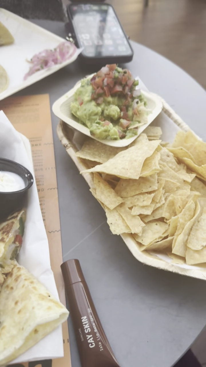 My friend and I initially made a reservation for four but arrived with just two, which required a brief wait to find a suitable table. Once seated, we were promptly greeted by our server, who took our order. We requested two chicken quesadillas, Mexican corn, a French 75, and a margarita with tajin.