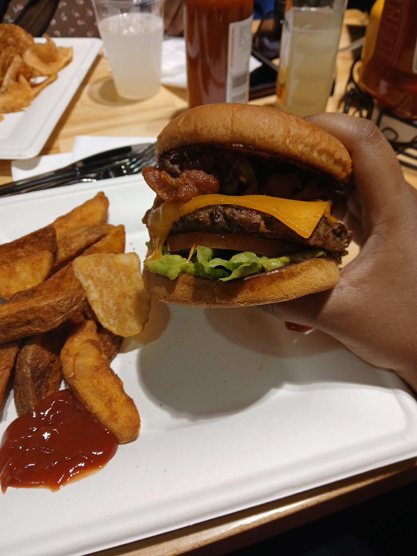 As for my food, I didn't have any problems with the burger. It tasted fine to me, but that's probably because I put a lot of ketchup on it. Afterwards though, I had gotten diarrhea from it. I think it could be because I don't eat beef very often, so take it with a grain of salt, I'm just giving my own experience.