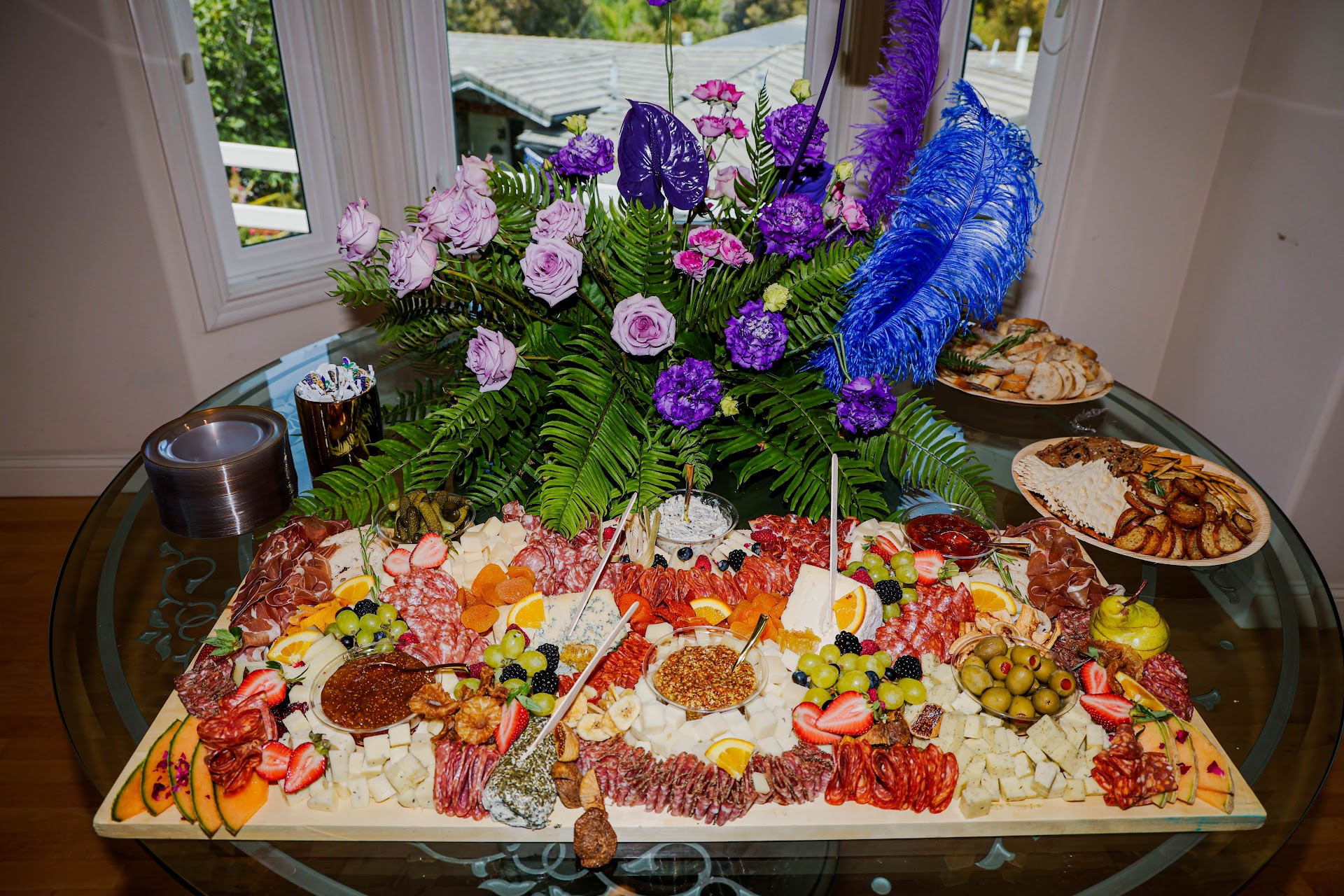 The centerpiece floral design, surrounded by an immaculate spread of gourmet cheeses, charcuterie, fresh fruits, and artisanal accompaniments, created a visual masterpiece. Every bite was as delightful as it looked—perfectly curated with premium ingredients that balanced flavors, textures, and color.