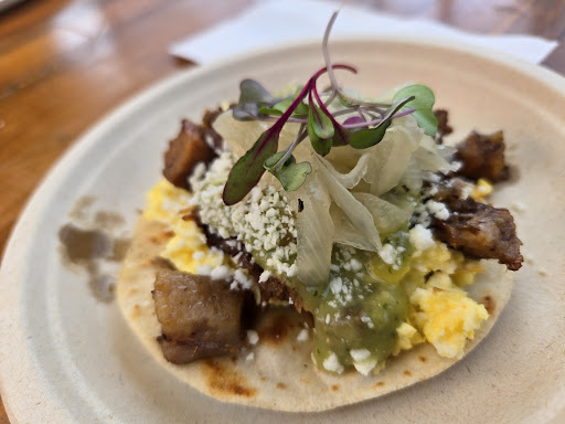 I went all in with the Birria Breakfast Burrito and a Brisket Breakfast Taco, and wowâboth were absolute winners. The taco was built on a soft flour tortilla and layered with perfectly fluffy scrambled eggs, cotija cheese, and a bright avocado salsa. Meanwhile, the burrito was a flavor bomb, featuring scrambled eggs, crispy tater tots, melty Swiss queso, and the real starâchipotle aioli.