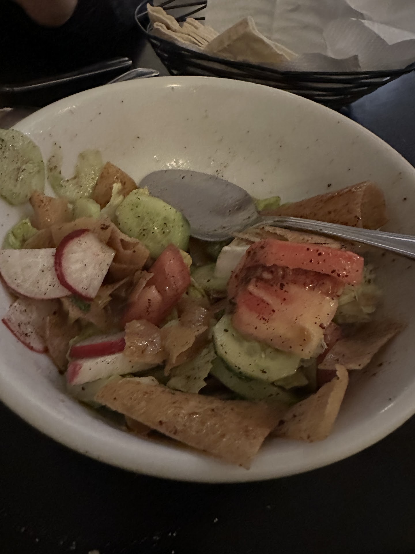 I’d give 3 stars if our mains had actually made it to the table. After about 1.5 hours of being at our table and only receiving our apps we asked the server if she has an ETA on our mains and she said “I wish I did but I don’t!” So we cancelled and asked for our checks. Every table around us was visibly upset also. They said they’re short staffed and overbooked. But they did nothing to make it up to guests who spent their Saturday night here. Server would vanish for long periods and then we’d have to flag her down to get her attention. Charged $14 for dolma which were 2 tiny pieces. Mantee was great but need to order 1 per person. Fattoush salad was amazing, but again small portion for $14 with no sort of protein.