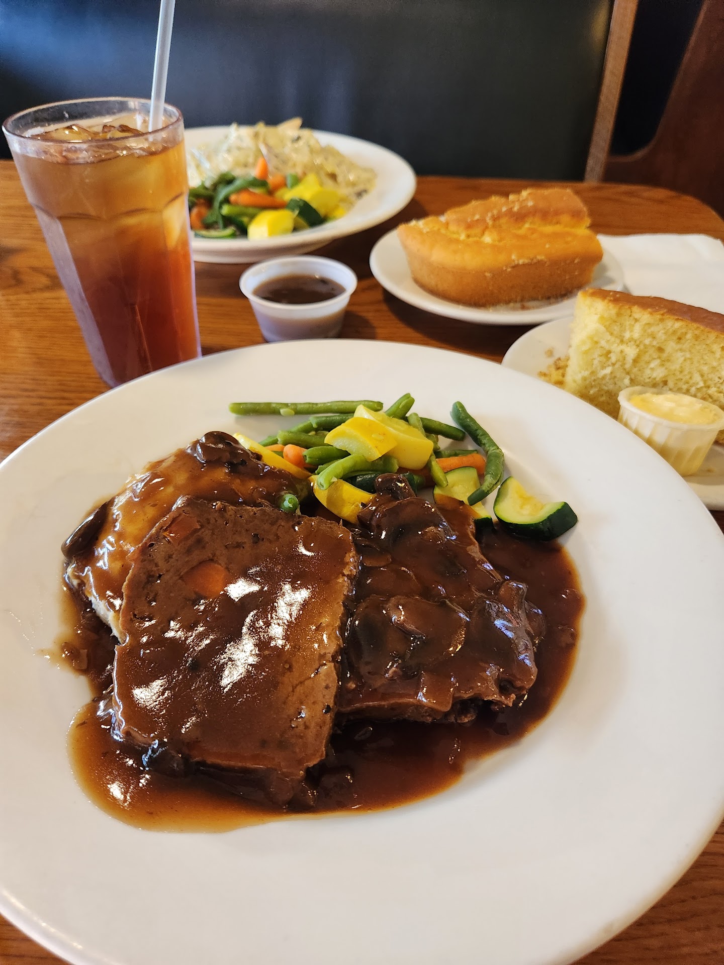 Read moreI haven't been here for a good while. It somehow changed as far as service & servers are concerned. They seem to be detached. What I mean by that is that they appear to just go through what the day to day brings. No warmth or welcoming feeling when you get in. They just tell you to go & sit yourself. I ordered an open face hot turkey sandwich that came with a small serving of mashed potatoes & a very tiny plastic container of cranberry sauce. I told the server I would definitely need more than that, he brought another one of the teeny tiny plastic container & proceeded to tell me that if I asked for another one, I will be charged. The turkey is not tender. It's a little chewy & dry. They never brought the garlic bread that comes with it. I remembered to ask for it towards the end of my meal. That's the only time the server remembered he hasn't brought it. Also, they absolutely do NOT allow any substitution at all at any time. Now I remember why I haven't been back here for many years. The only reason I was here was to order fresh peach pie to take to a friend's house. To be honest, I was surprised they are still open for business. And if they eventually close for business... I wouldn't be...