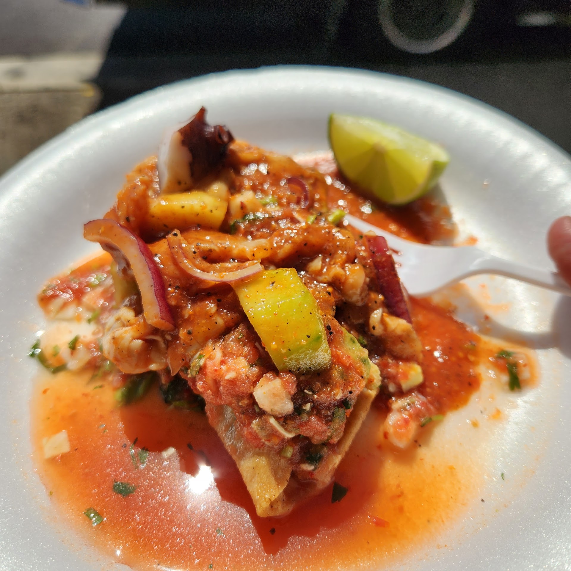 The Ceviche is delicious as well however I had the mixed seafood one and it was extremely fishy. I did not enjoy it, but have since gotten the shrimp only ceviche and found i fresh and flavorful. A squeeze of lime and drizzle of the orange house made sauce and you're good to go.
