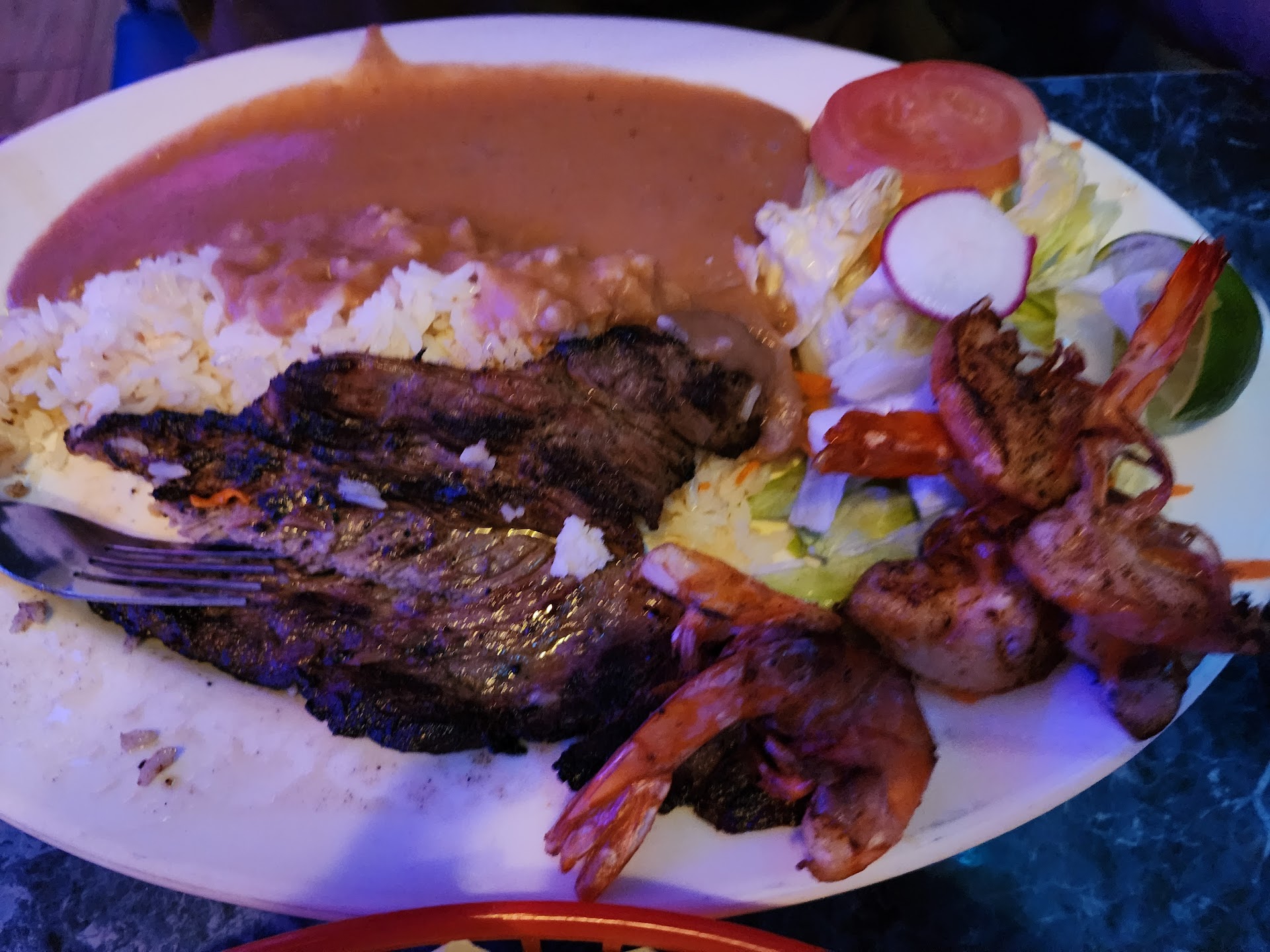 Disgusting food , this happen because donât follow my instinct, we went at 1:30pm pick lunch hour and ALL the restaurant was empty , I know now why , I ordered a steak and shrimp plate , the rice had balls of dry rice becase was super old , may be reheat in the microwave, beans has all bubbles like was getting bad , shrimps was with skin super difficult to eat , and the grill steak has a disgusting mustard flavor , I have a big stomachache and want to go to the bathroom , I never...