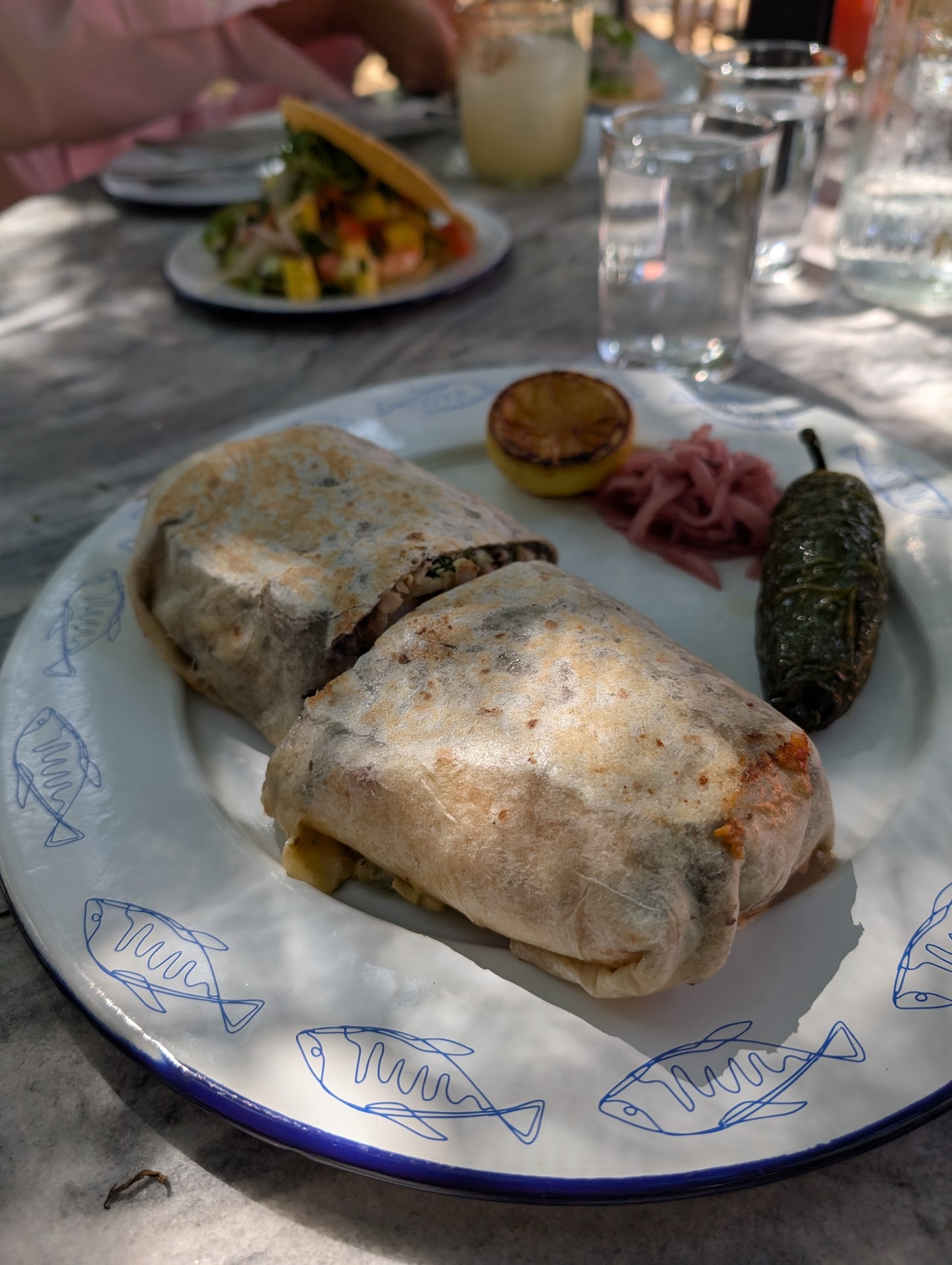 Overall, this is trying to be a high end mexican spot like Salazar or something but all the fod it mid, I think everyone is just confused by the nice courtyard. Go support a taco truck in this...