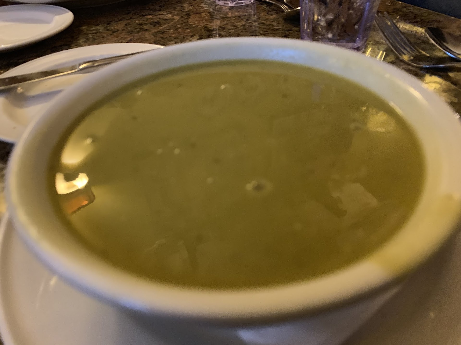 Four, count âem FOUR of their soups were vegetarian as well. I had a bowl of the split-pea as my main which was very tasty. I didnât need to embellish it with salt or pepper which often happens with restaurant soups. It was blended smooth and I might have liked it with a little more texture .
