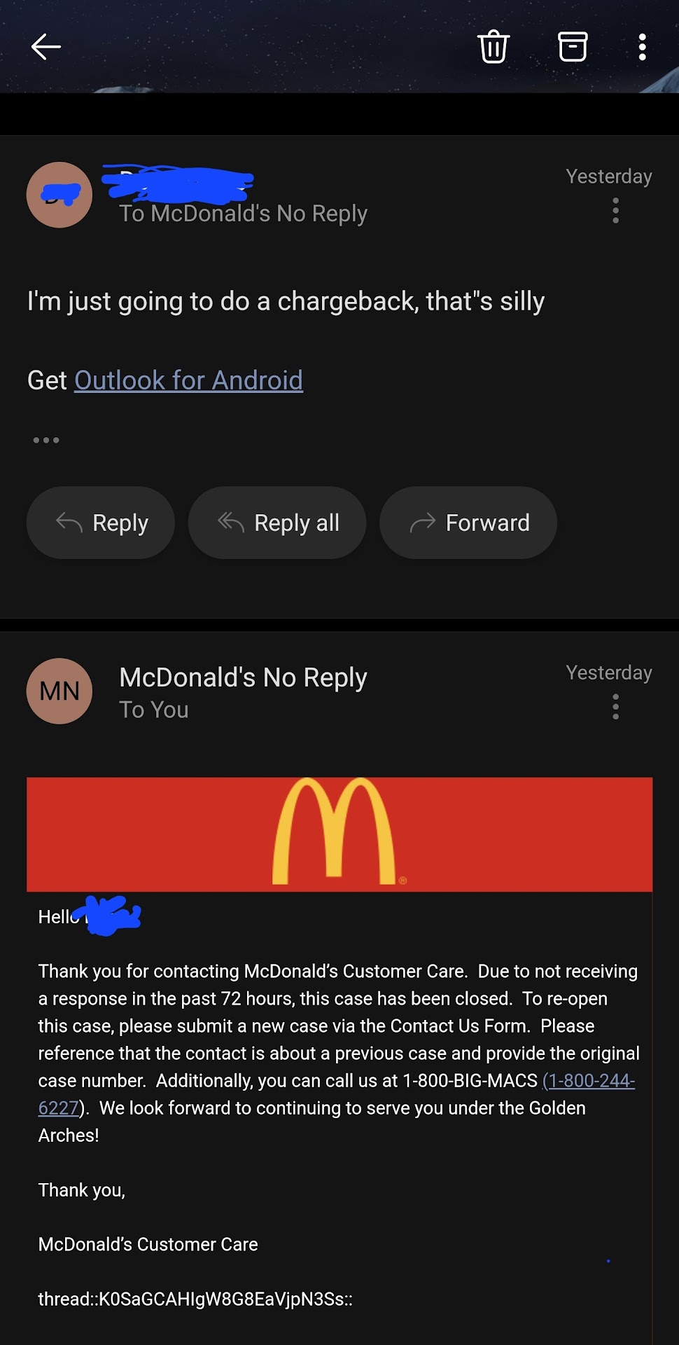 This is not the first time I've had bad food issues with this restaurant. So when I go to get my money back, do I get some credit to make up for the gas it costs to go back over to get my money back?