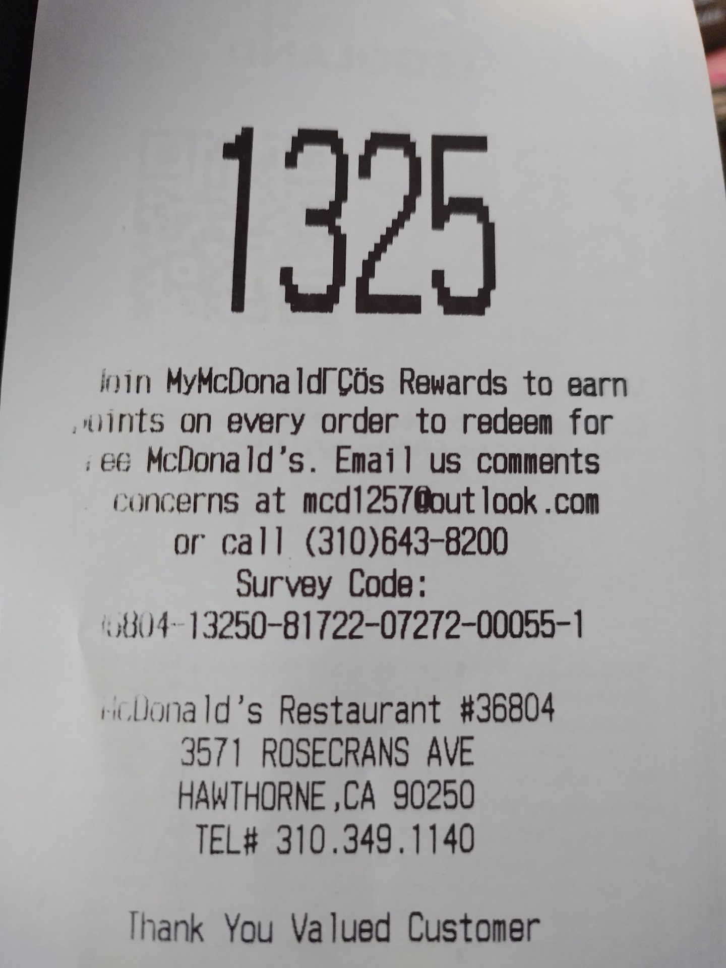 Read moreThe food, like any Macdonald, terrible attention, tired of coming to this place for my time, customers have to witness the verbal fights risen between them, an old lady who seems to have worked his prepotent attitude with her classmates because they have raised her position, shouting at all the young people (they show more education than her and they only listen to her) and with her face always with a grimace of anger. Unfortunately, we have to start the day all the people who arrived at that place to have breakfast ... a lot of disorganization and lack of communication, the wait for food is very long and it remains in the bar until you have to ask, they deliver it to you cold it's terrible !!! (Olympic and Central in Los Angeles)