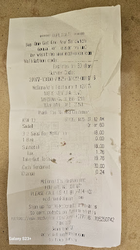 I paid for it thinking I'm wrong but I asked her why and she kept walking around ignoring my question. She says " that's for a small" as she just keeps walking around and ignoring that I'm trying to ask her a question. then after afew minutes she says to me you should call McDonald head head office if you have any issues.