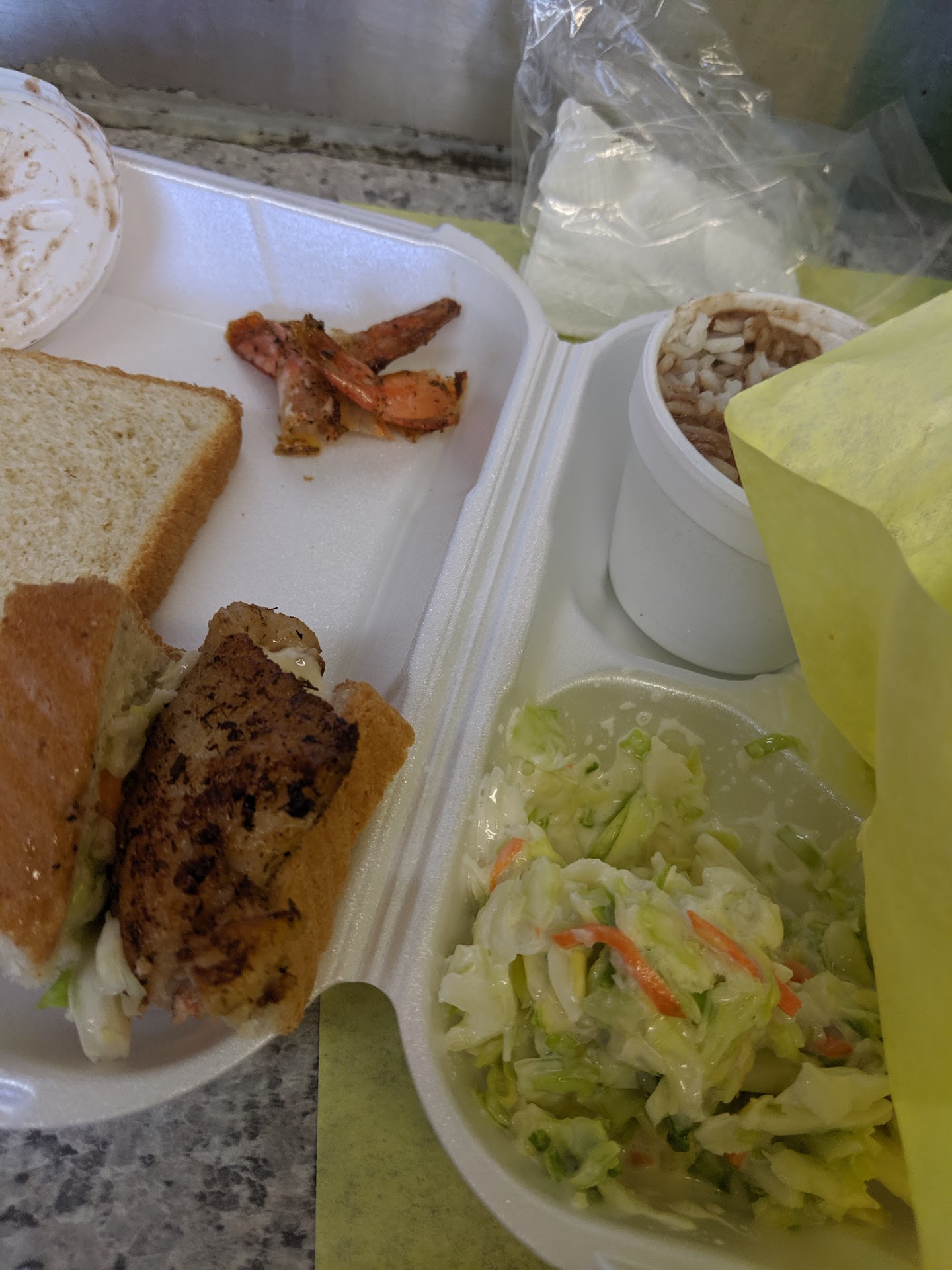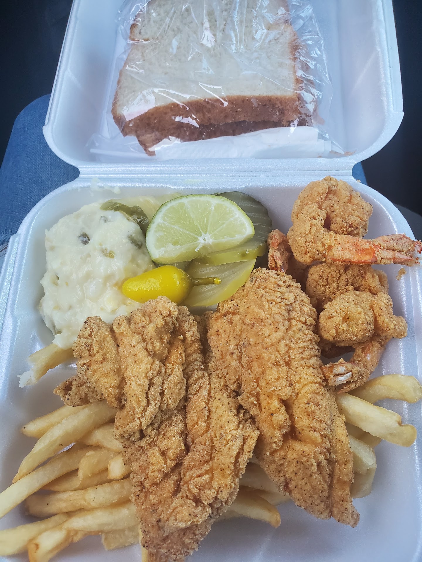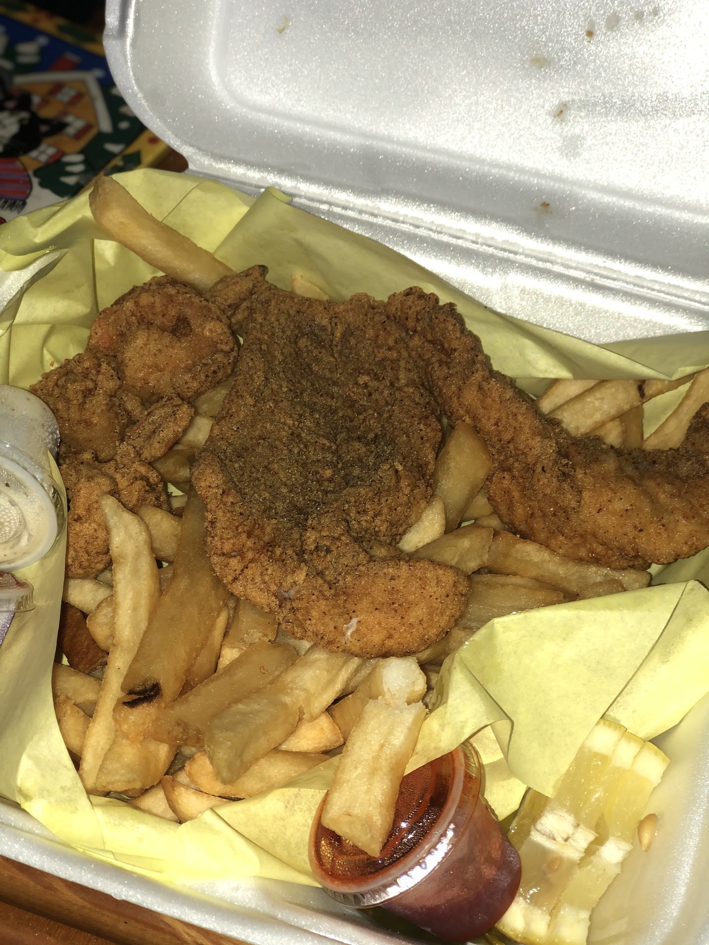 Read moreThe name gives you a good idea. It's a small building that sells fish. Southern style black owned fish shack. They have some bar stools just outside the kitchen for dining in, but I feel it does much more take out. Besides the southern stereotype of fried or grilled fish w/ hush puppies, cole slaw, mac & cheese (though they have those too), they also have salad, tacos, etc. I really like their stew/soup. It's creamy but non dairy. The portions are good. It's well priced. Sure, it's not crazy cheap like a $1 burger, but it's made to order good tasting seafood w/ good portions, so you get a good value. It's made to order, so you're not getting your food instantly, but I've never had to wait long either. They seem to operate pretty quickly. If you're that worried about a wait, call in your order ahead of time. They also do delivery through GrubHub, Postmates, and other similar services. They're part of fivestars and they have promotions regularly, so you get get extra deals. Last but not no least, great service. The guys have always been friendly. The owner (Georgette?) is always super sweet and friendly. Go eat there sometime...or...