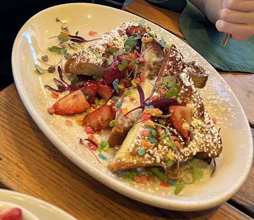 Read moreWe got reservations for 8 and were seated on the patio. Our server was really kind, super patient and helpful, and cracked jokes with us — all around really fun! We ordered a bunch, of course, but some highlights were the French toast. My kid couldn’t get enough of it. He would have licked the plate if I’d have let him! One of us had the Cobb salad and she said “I was almost regretting my choice to get a salad but then it ended up being the best Cobb salad I have ever had!” So, glowing review there. Another at the table ordered the car cafe burger and was definitely happy with it! And a couple of us ordered the standard — eggs were cooked to perfection, the fruit selection was excellent, and the potatoes. My goodness, those potatoes. Run, don’t walk to try them. I’m gonna be thinking about those often. Plenty of food to go around, and prices were fair for the quality! The only bummer (for me, perhaps not as much for others) is that they do allow dogs on the patio. There was some barking involved and overall it’s just not my favorite to have pets in a food establishment. I’m not knocking off an overall star though, the food...