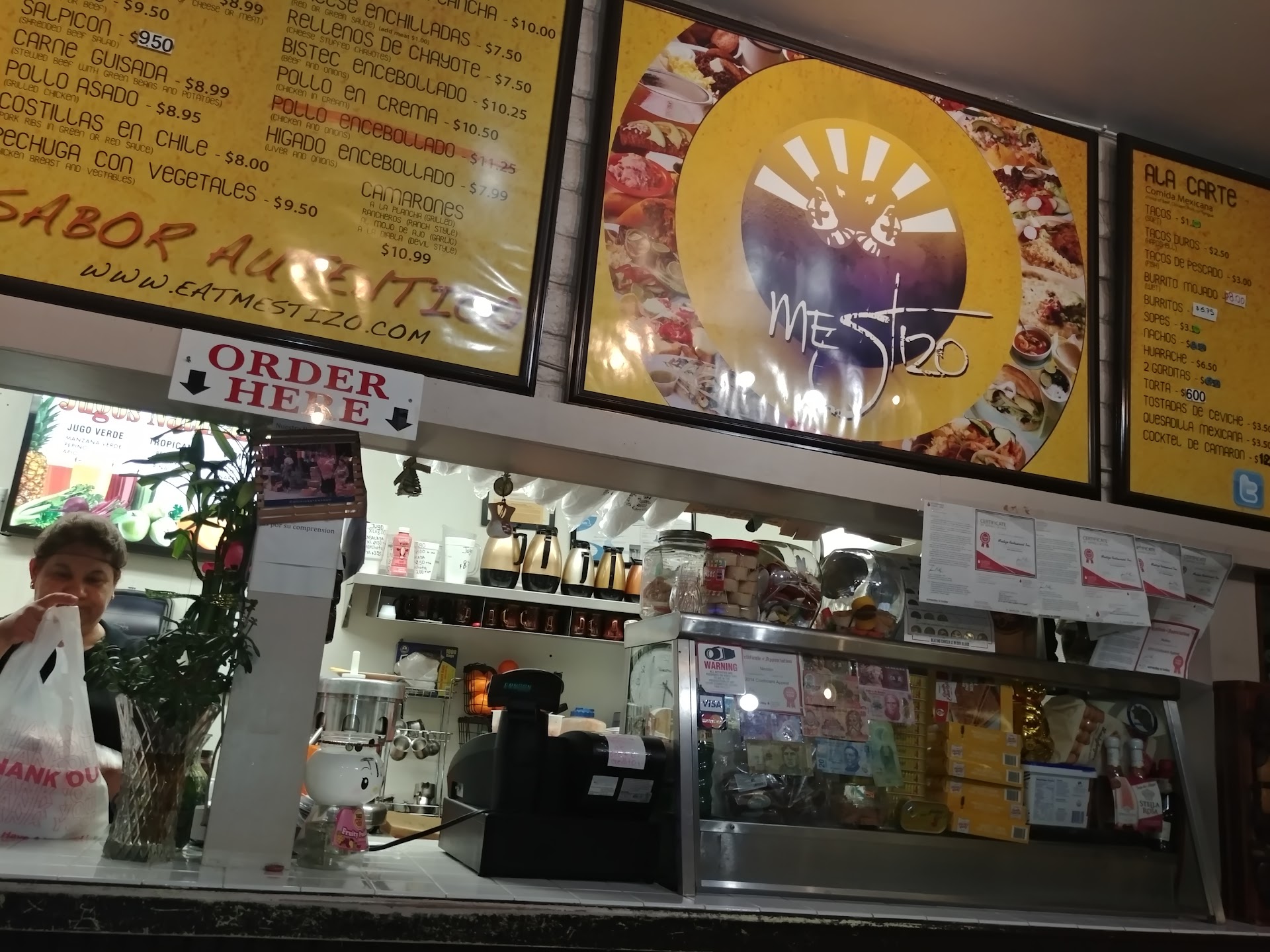 The lady / B** who works there as cashier is so rude she treats me with a huge attitude when i go there to patronize the place I usually spend around 15 by myself kept going back even after finding hair in my food multiple times no apologies she always seems very mad and Yells at customers she has no respect for the loyal customers who have been going there way before she started working there she always forgets to make my fresh orange juice then yells at me when i ask for a refund I ordered empanadas for my Grandma the oil they cooked it in was disgustingly rancid , I asked her to take the item back she said no!!!! Because that's how they serve the empanandas and that nobobody else complains about it. She is just a rude Vieja amargada Odiosa she literally Rolls Her Eyes at me and other customers Stay Away if you want Good salvadorean food go to Pupuseria Metapan off Sherman way they have the Best pupusas best breakfast and best Service . or u can also go to El Ruby .if u go to El Mestizo be ready for a 30 minute wait at least teriible service no clean tables and bad bad mean terrible attitudes from the server / cashier she's always there except Monday and...