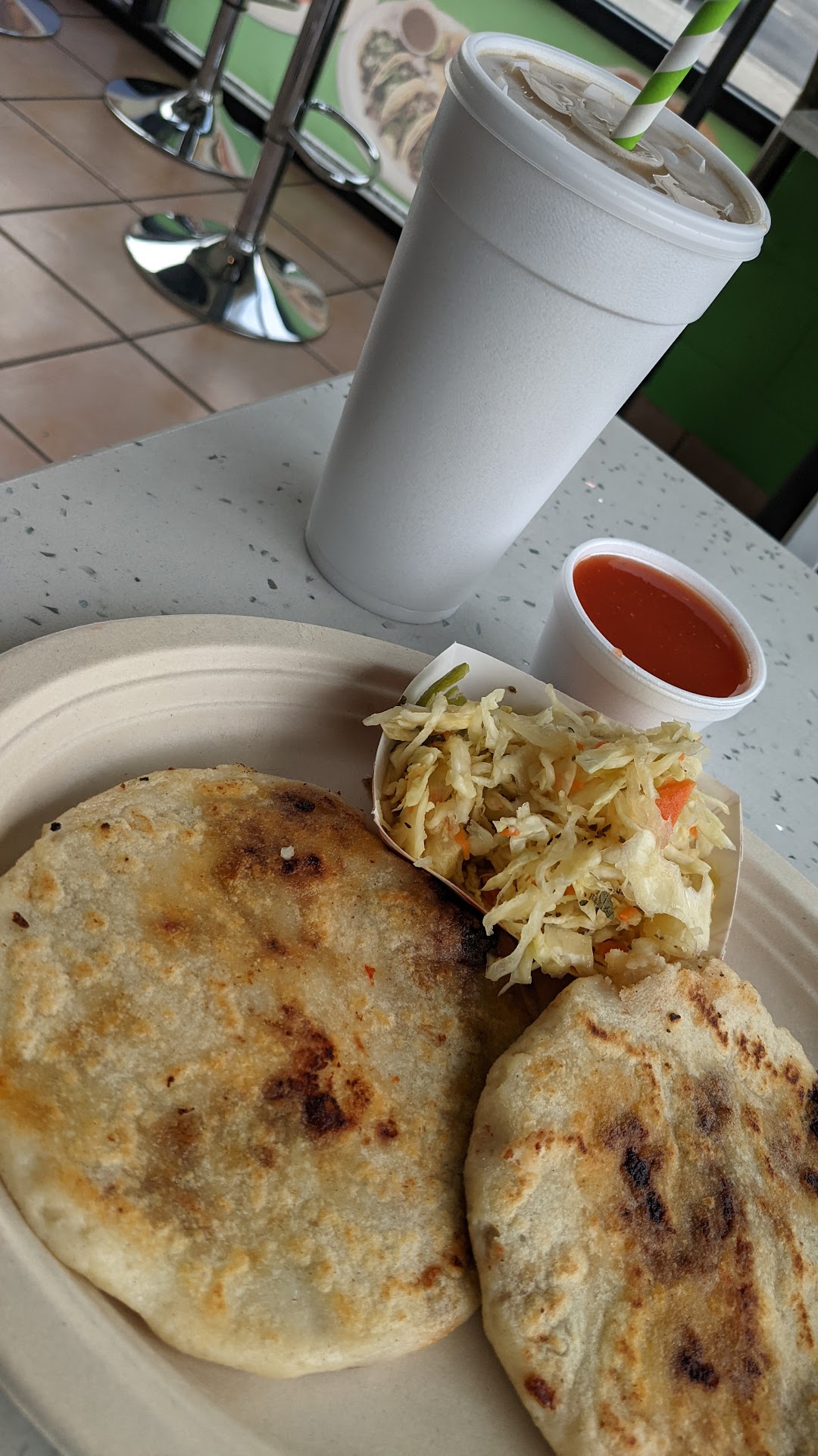 Read moreI went to this place because I saw their good reviews I just didn't know that a pupusa cost you almost $5.00 they're small the taste is okay but not the best pupusas I ever had, for the size of the pupusas I can go to another two places they have bigger pupusas on special days for $2 The only thing that I was very happy about is the customer service, the girl at the cashier is a sweetheart she is amazing, good service unfortunately the prices...