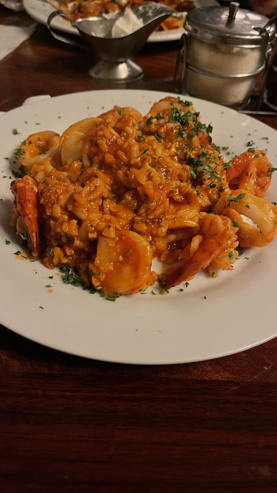 We had the bruschetta appetizer which was light and delicious to start with. Then my brother and mom split the sage butter ravioli and one of the specials of the day a pear strawberry date candied walnut salad with crumbled feta cheese they raved about. My brother said the raviolis were the best he's ever tried. The sage butter sauce in particular was exceptional. My sister loved her Fettuccine Alfredo! I got the fish of the day which was perfectly cooked and the lemon caper sauce was exquisite! They easily accommodated my dietary restrictions and were so nice about it. Our server walked me through which options on the menu were dairy free and I had quite a few to choose from. I also noted for next time that they have a gluten free pasta substitution for those who want it. My brother got a Pappardelle Alla Domenica to go because everything was so good and he also rated that extremely high when I asked. I didn't take photos because we were so busy eating and celebrating but everything was beautifully plated in addition to being delicious.
