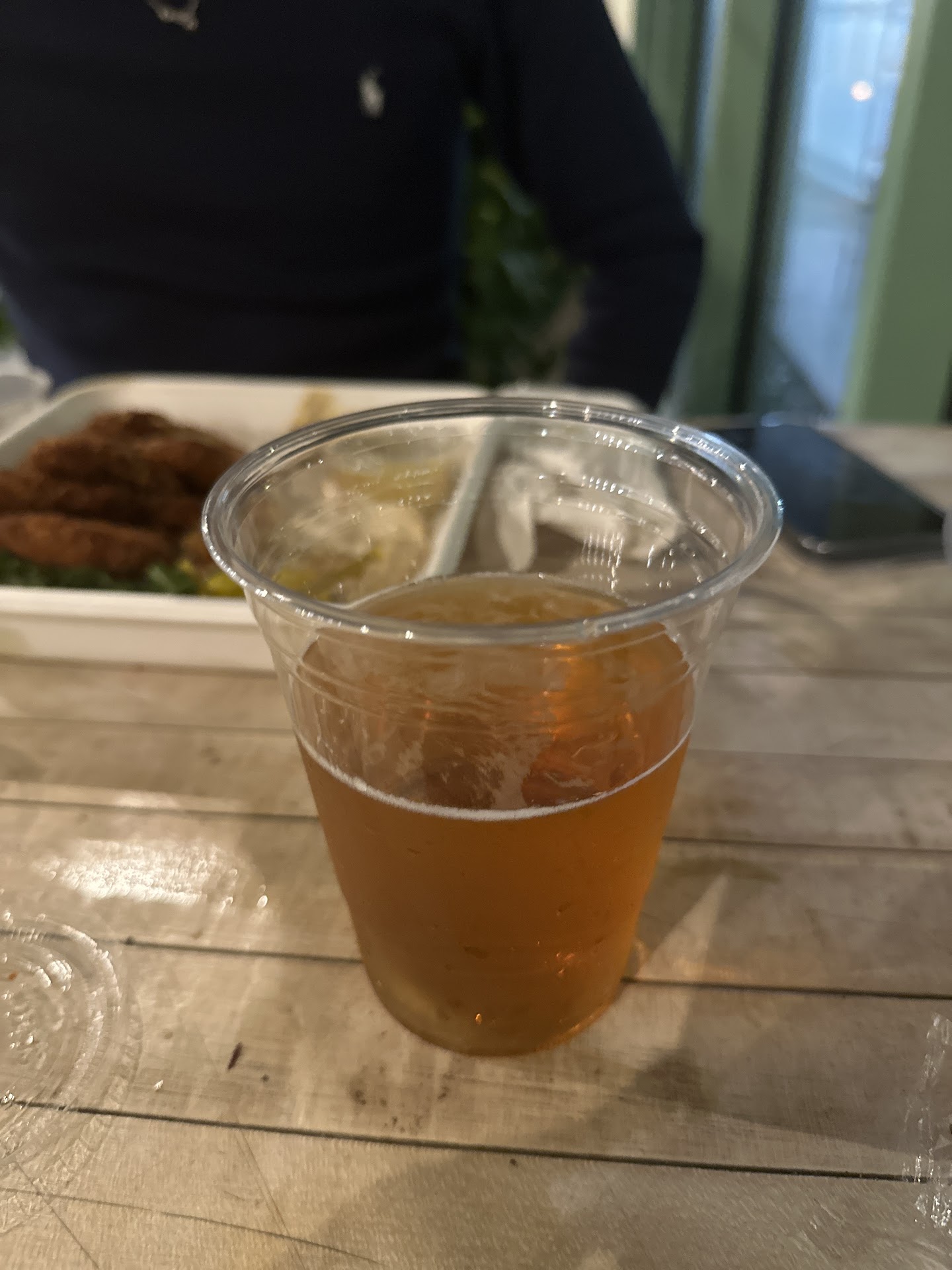 Finally, the amount of plastic is atrocious - plastic utensils, plastics sauce cups, plastic beer cups. Come on, it’s a sit-down restaurant, surely we...