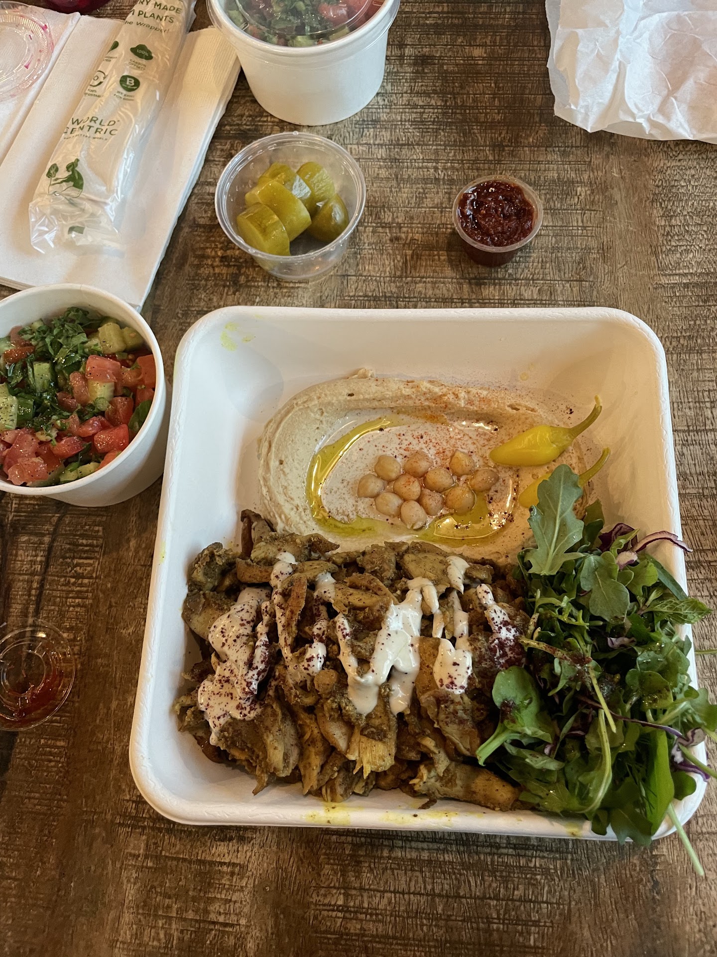 Definitely all the fluffy arugula salad mix all over everything detracted a bunch. And the pita in the wrap was too thick. Not bad but it didn't hit the street shawarma groove, or add any kind of elevated vibe. Out was just awkward to eat.