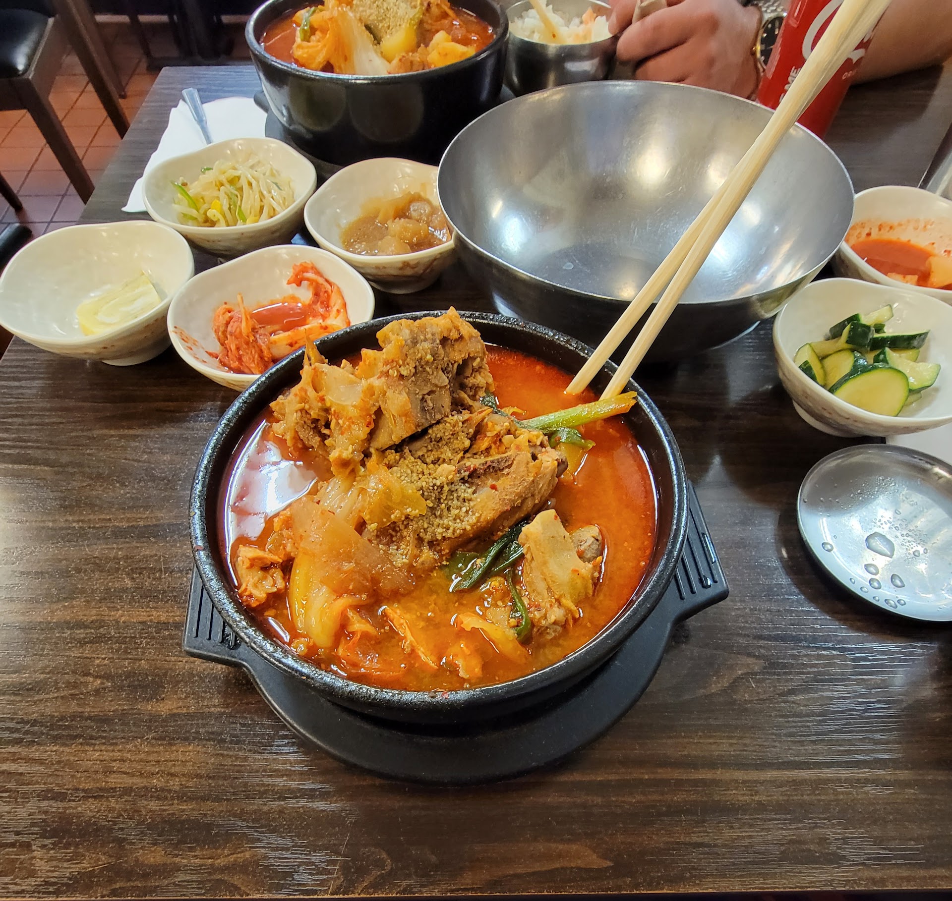 Food was great! Stew wasn't salty, which is what you'd like when it comes to homestyle. Ribs were okayyyy (wasn't grilled). Steamed egg was a bit overdone but the kimchi tasted homemade. So that's a...