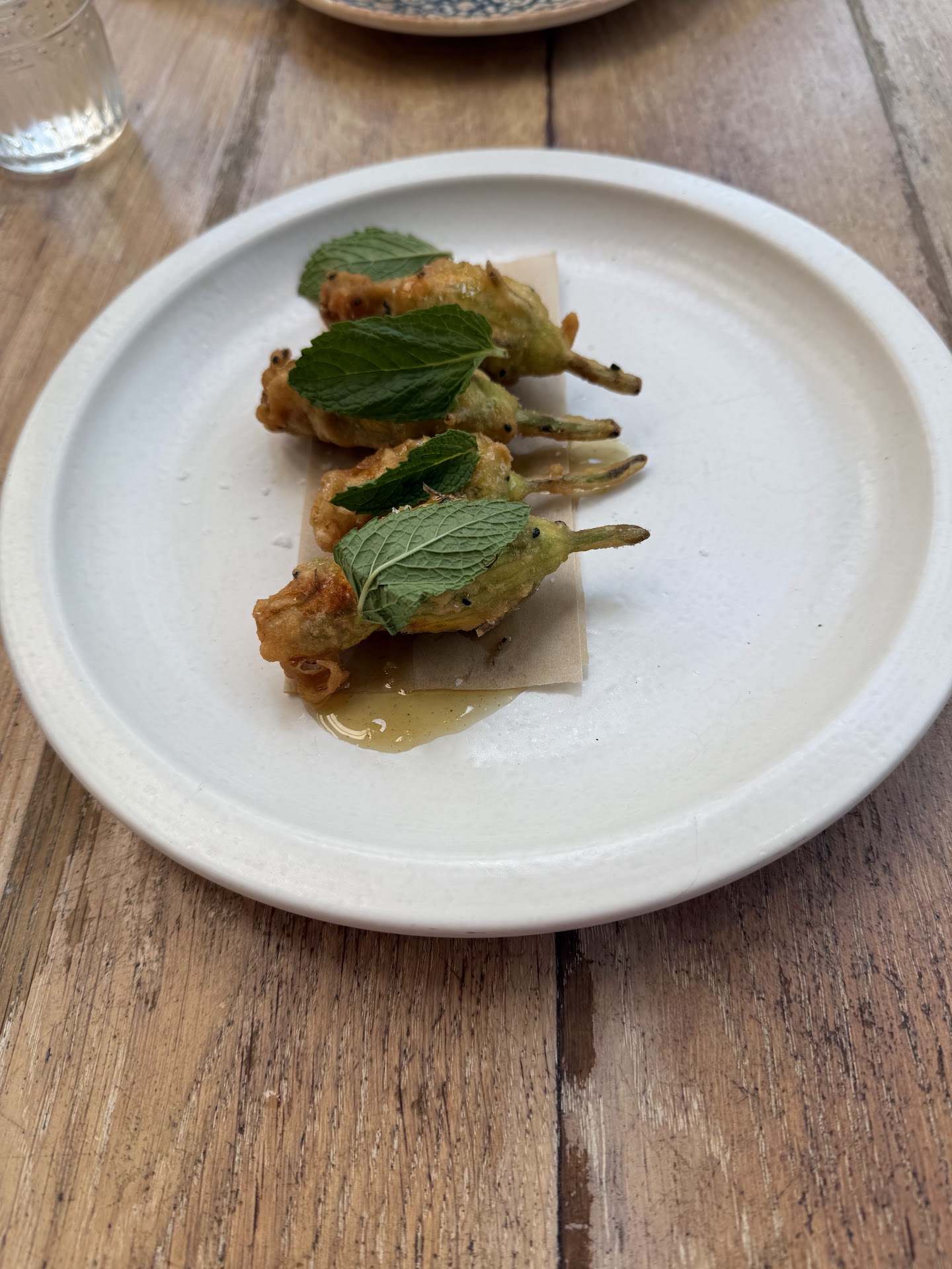 We had a reservation, but it still took 15 minutes to get seated, not a big deal, but once we were seated no one greeted us for another ten minutes. Once we met our server, he took our order which was all fine. We asked to have two starters come out first then our entrees. Because one of the entrees came with couscous and I'm gluten free we asked to swap out for rice, which we were told would need to be ordered as a side. Not a huge deal, but a little annoying.