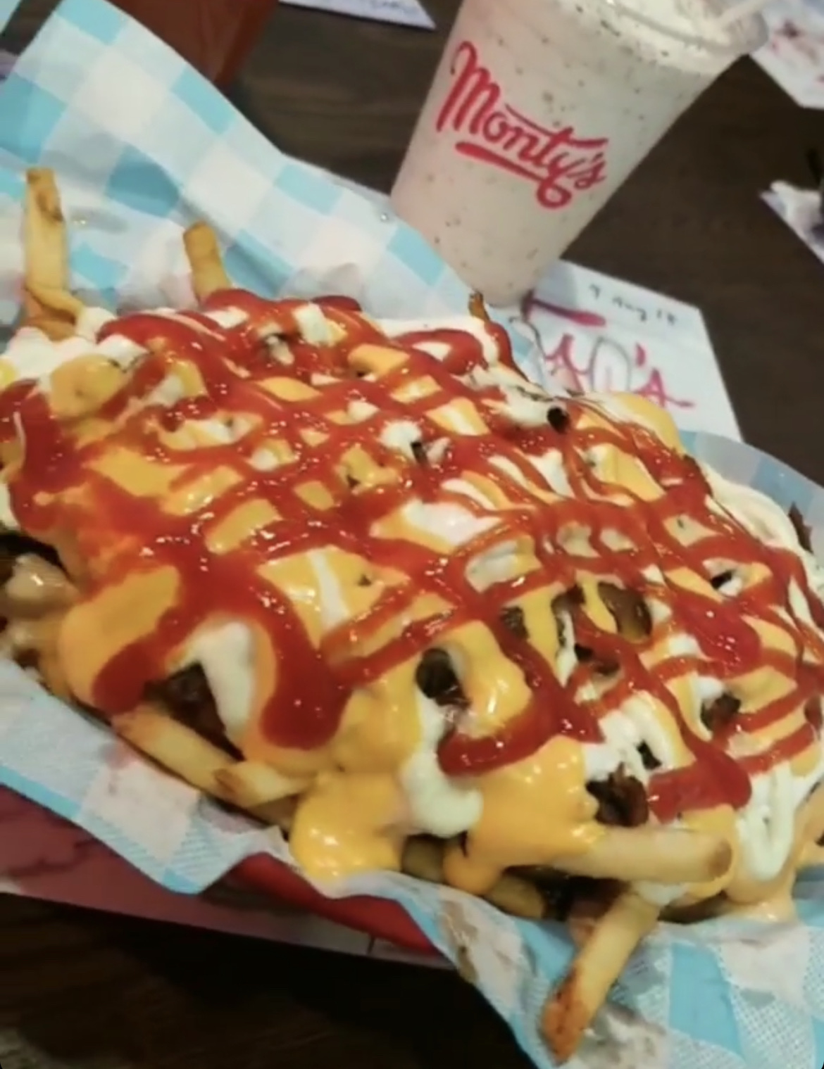 I can’t believe I have never reviewed this Monty’s, this is the first place I ate when I got to LA. They have remained a regular spot I’ve ate at over the years whether it was to dine in or take out, their quality is consistent at this location. If you frequent here then it goes without saying that the dogpile is the best item to order but it’s an off-menu not so secret dish. It consists of a bed of fries or tots, or 50/50 of both, topped with two patties with cheese and 4 different house sauces. I get mine with fries and without the onion aïoli or Sriracha and add extra cheese and it’s simply perfect. This is one place that I can bring anybody that is not vegan and they have been impressed every single time. Monty’s makes it easy for me to prove to people that veganism does not compromise flavor or indulgence! The chocolate shakes are absolutely to die for and I can never manage to finish one on my own so I only wish that they made a smaller size for someone like me with a small appetite because I usually waste half 😭 They melt before I can finish them and they don’t store well in the fridge or freezer, it’s a texture thing. I wish they still allowed the maxed out fries to be upgraded with a patty for $4 but they stopped that when they added new locations to be consistent I guess. It was never an issue until a new location opened and wouldn’t do it so I assume they didn’t want there to be confusion about it. For me that was more budget friendly as an individual dining alone and less wasteful as someone with stomach issues that force me to eat small portions. The food reheats decent in an air fryer so you’ll still get to enjoy your leftovers though so no worries if you can’t finish it! Oh and they do the SICKEST collabs with their store merch that you do NOT want to miss out on!! I wish they included matching sweats to complete the fits because I’d be all in & a longboard collab too haha but that’s asking for a lot. I can dream 😅 The staff here is beyond friendly, soooo nice and always make me happy to be there. They have free stickers and pins on the counter to take and I always take extras to hand out like business cards when I recommend them to everybody. Last, but not least, do not forget to go on your birthday! There’s a sundae you can purchase only on your birthday that comes with this huge happy birthday pin that they customize with your name in stunning font (I’m talking Disney style penmanship) and ngl I did not try it so I can’t comment, I just wanted the pin with my order which is why I ended my bday at Monty’s last year and they kindly obliged 🤗 overall they are doing the vegan community the greatest service by giving us food that anybody and everybody can say is delicious AF.